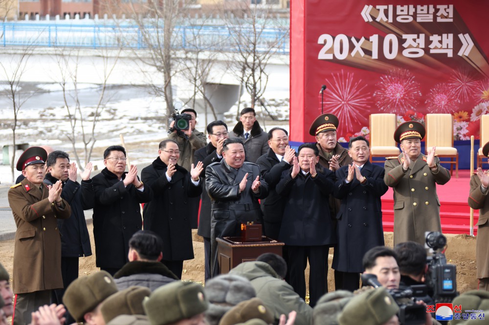 奠基典礼场所洋溢着军人建设者保持以大变革之宝贵实体装点贯彻落实我们党地方发展战略大纲的第一年斗争的气概和干劲儿,今年要继续取得飞跃发展和建设成果的战斗热情和江东郡劳动群众展望同即将建成的复兴财富一道会日益文明富裕的美好未来的乐观和激情。