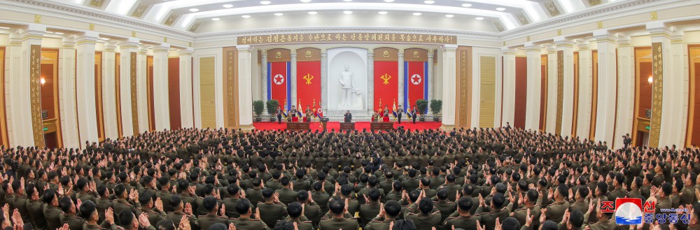 金正恩同志概括了国家周边环境等世界政治军事及地缘政治格局变化的特点,并谈及进一步完善共和国武装力量的备战应战态势,以便能够主动应对任何具有可变性的安全形势。