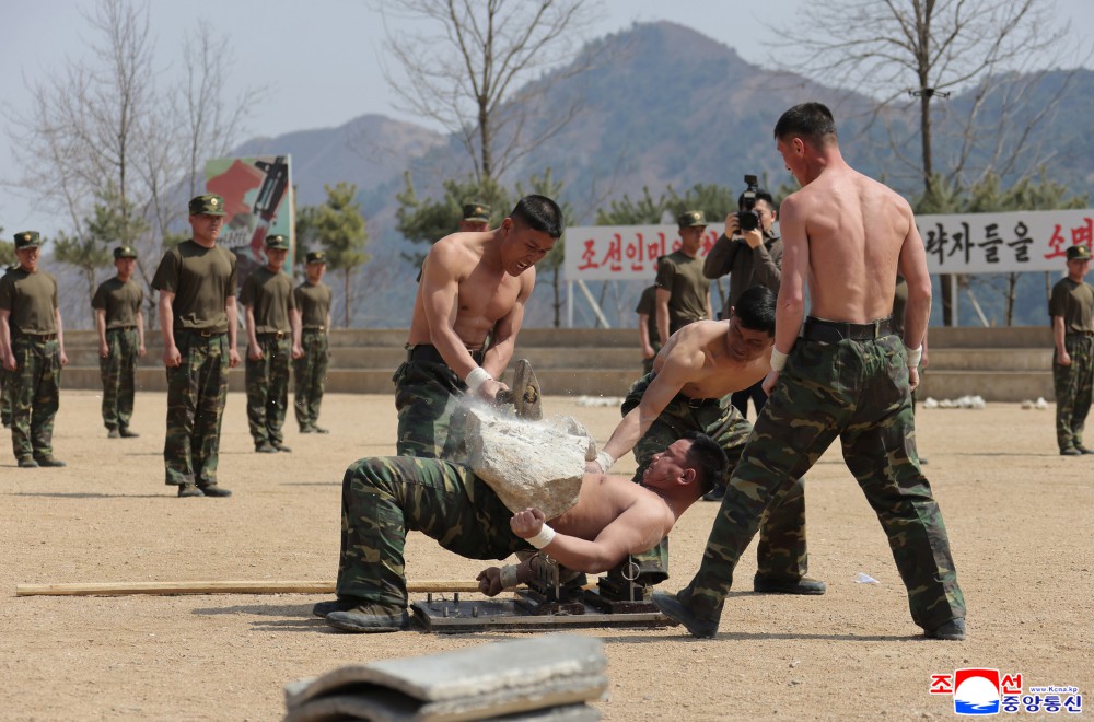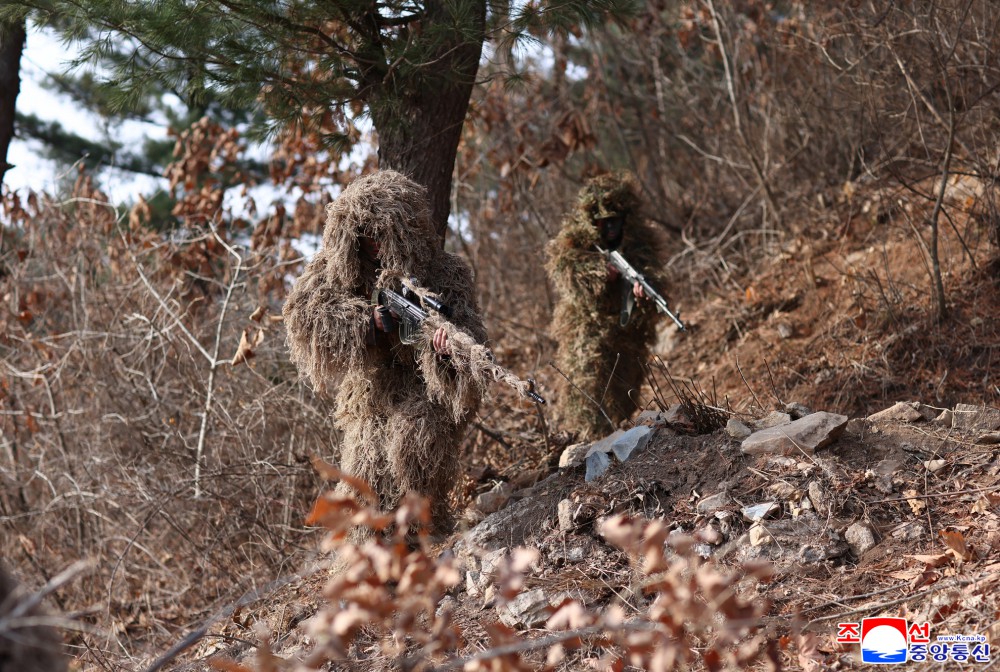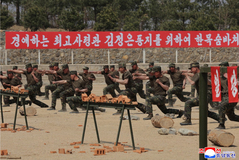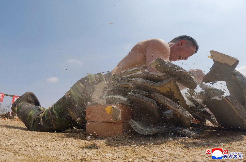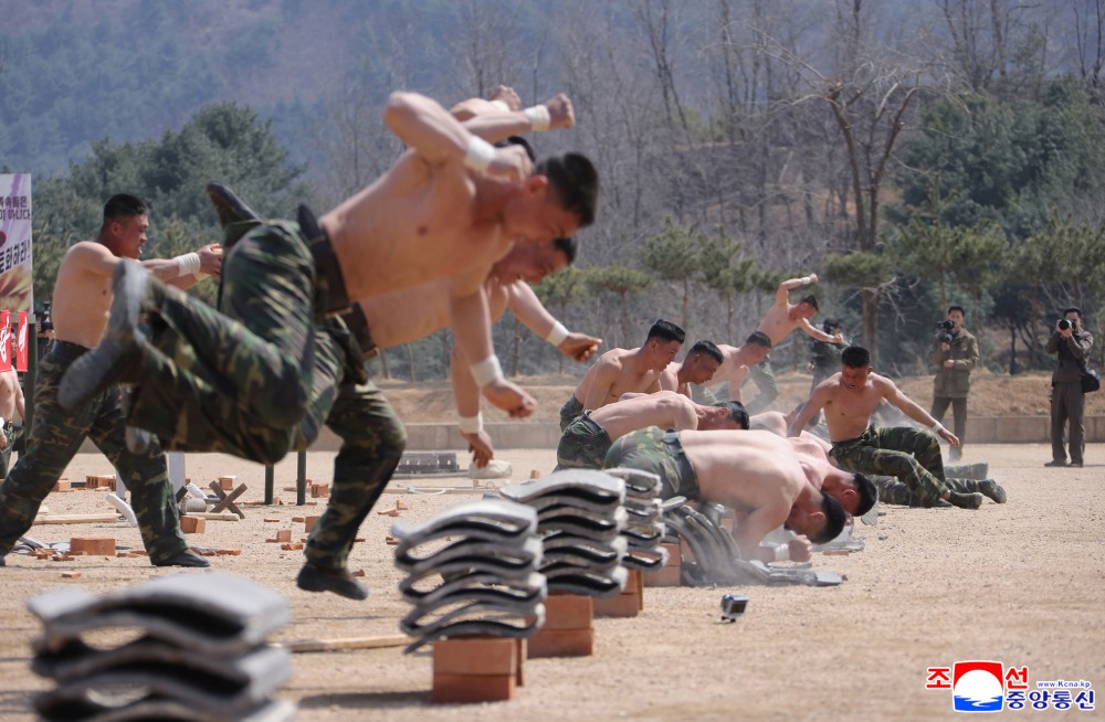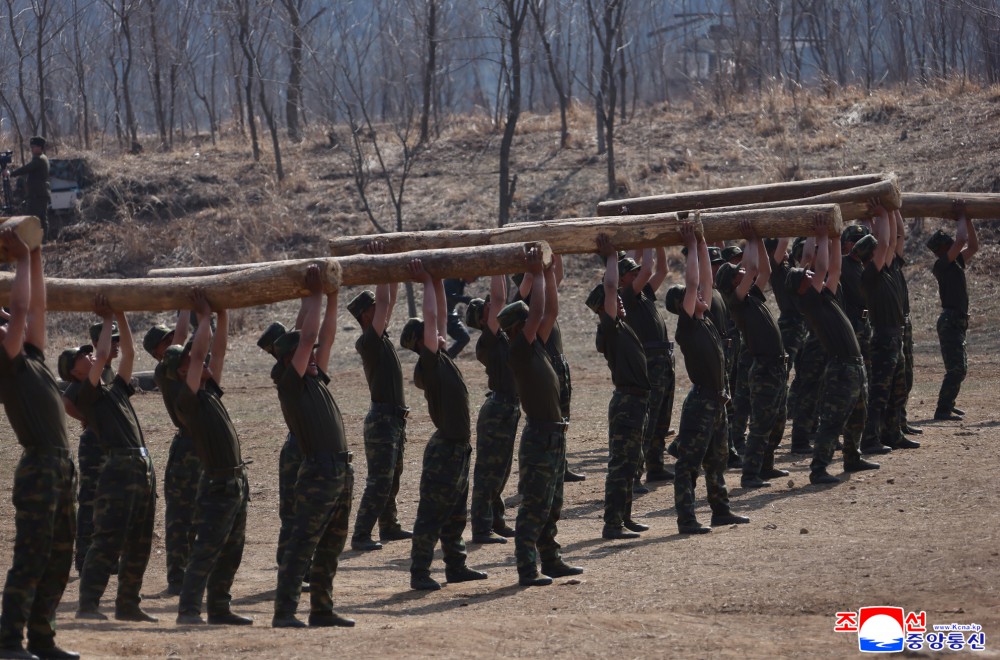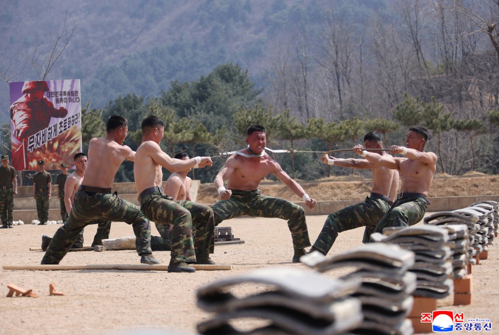金正恩同志观摩杀敌斗志和英雄气概澎湃的训练,高度表扬特战兵力官兵的爱国热情和战斗精神。