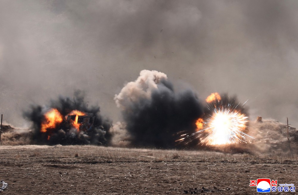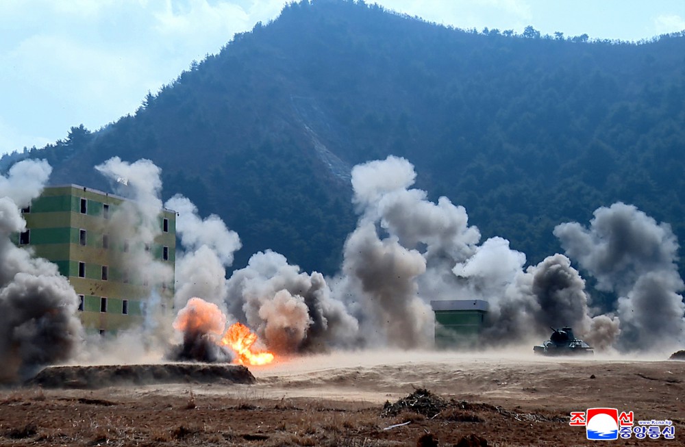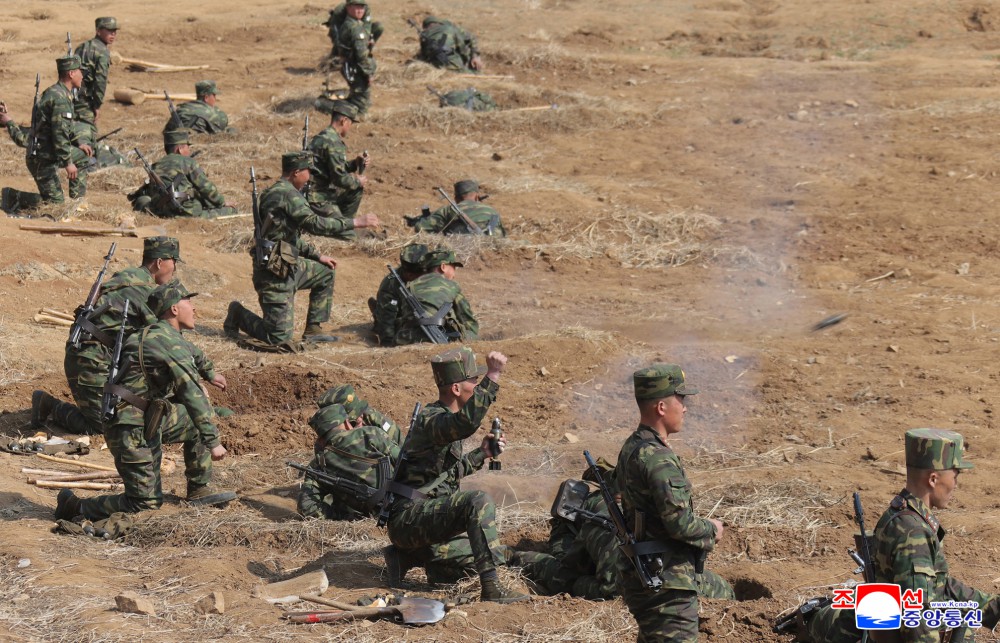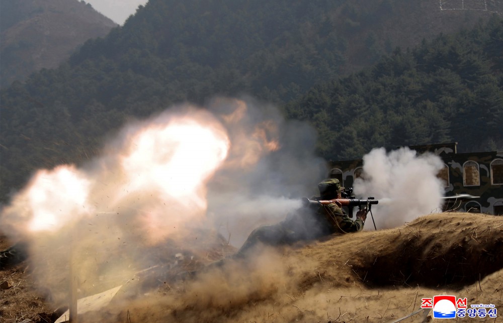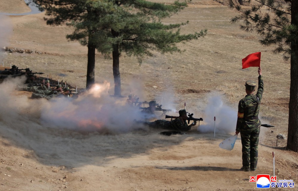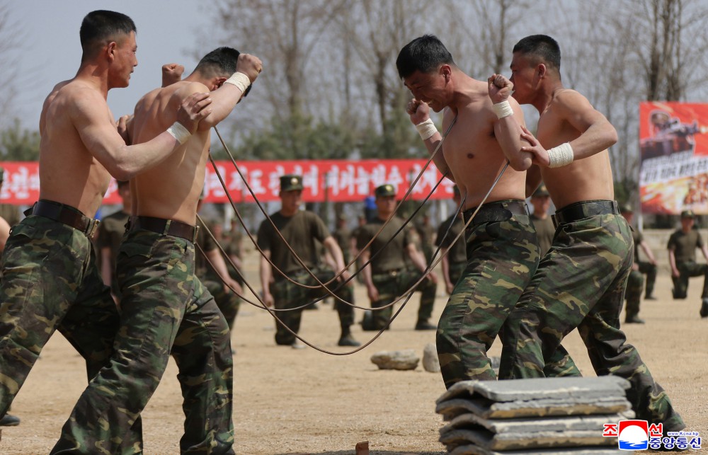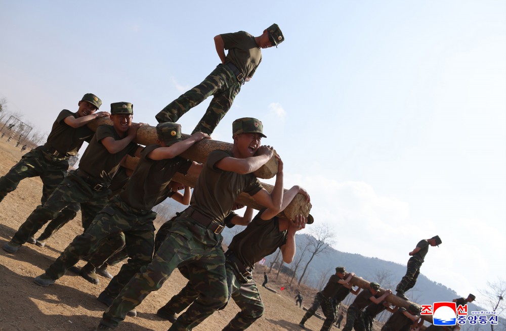金正恩同志观摩杀敌斗志和英雄气概澎湃的训练,高度表扬特战兵力官兵的爱国热情和战斗精神。