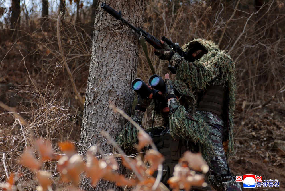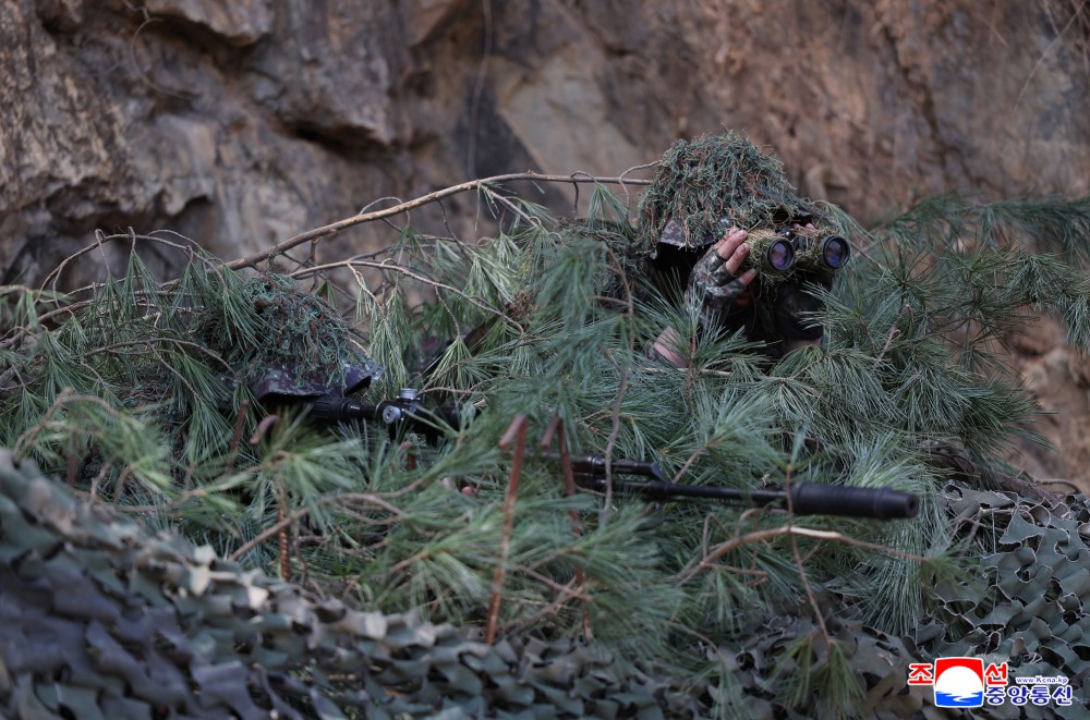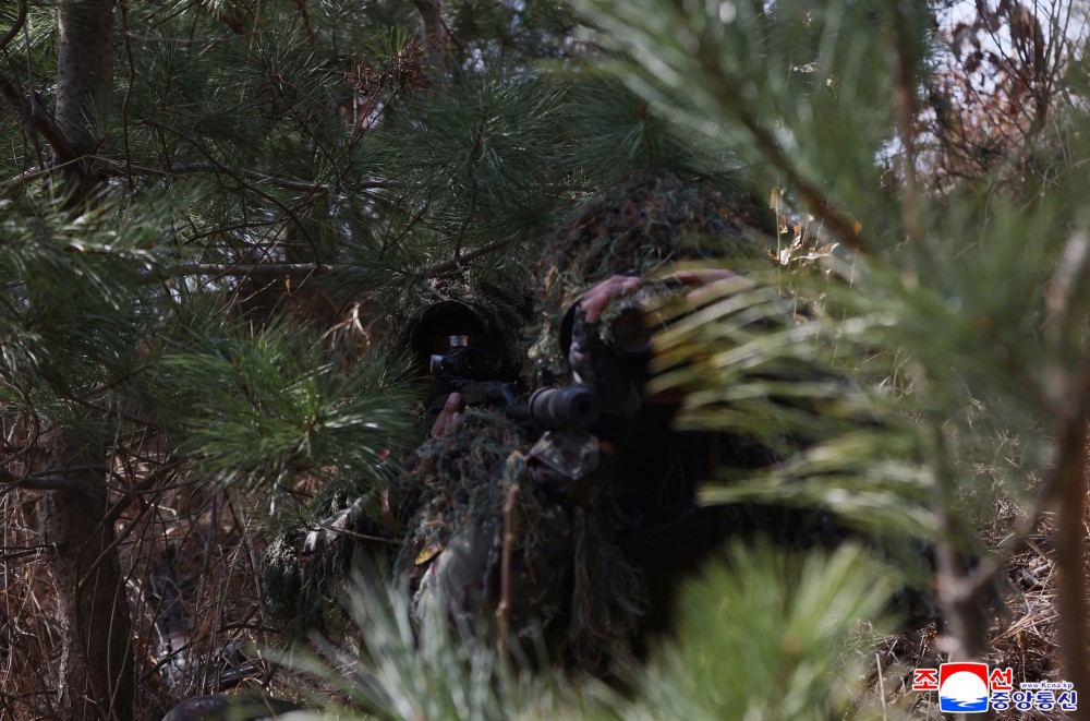 金正恩同志指导了战斗员自动步枪射击训练和狙击步枪射击训练。