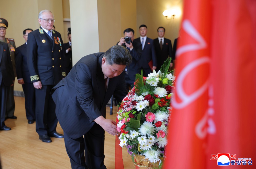金正恩同志虔诚地缅怀在最严峻的年代用生命捍卫自己祖国的尊严和主权、世界和平与安全的烈士们,表示了崇高的敬意。