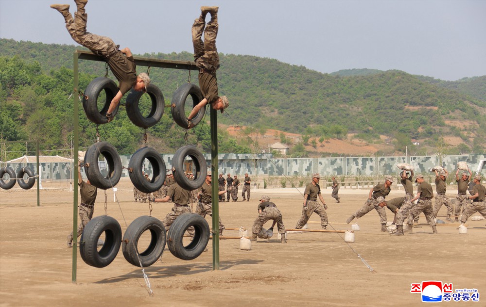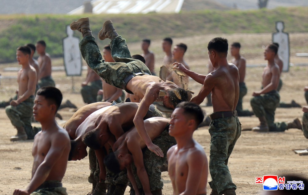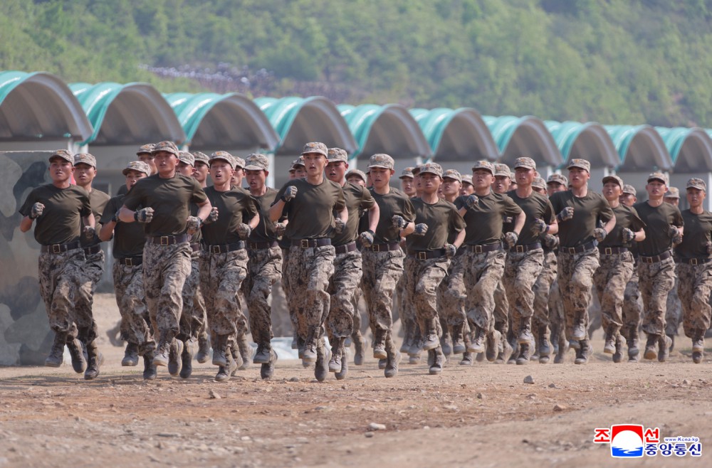 朝鲜劳动党总书记、朝鲜民主主义人民共和国国务委员长金正恩同志访问朝鲜人民军首都防御军第60训练所,观摩了在训练干部大会讲习体系内举行的各兵种战术训练方式课。