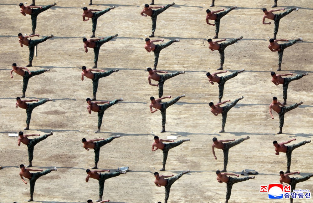 朝鲜人民军训练干部大会与会者一同观摩。