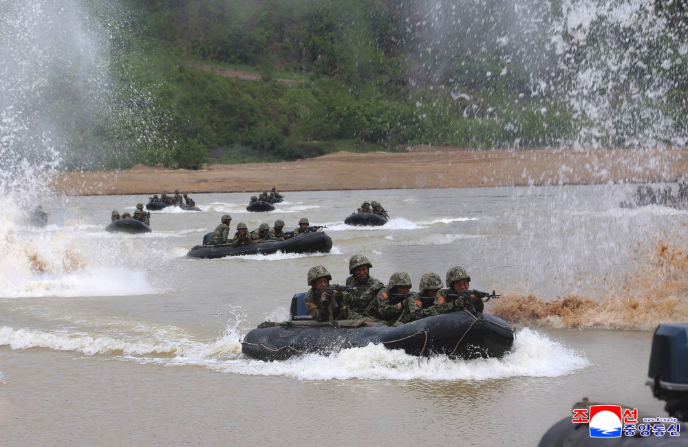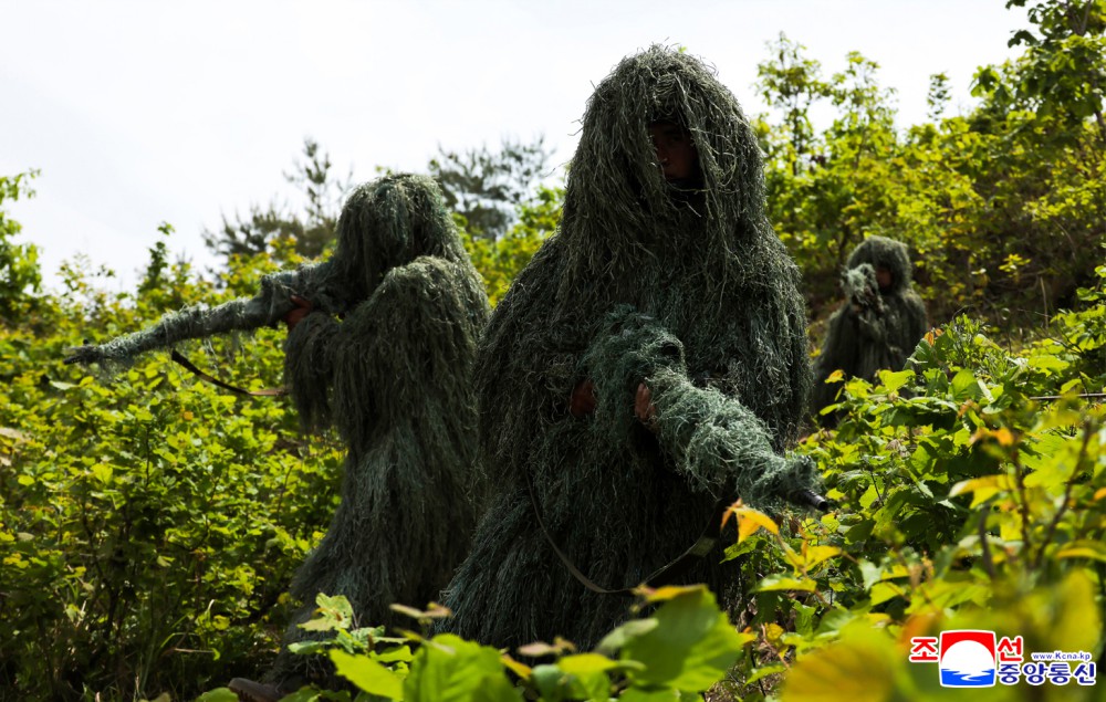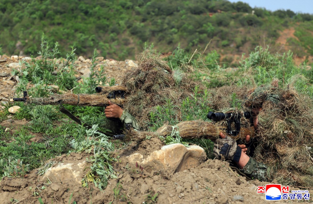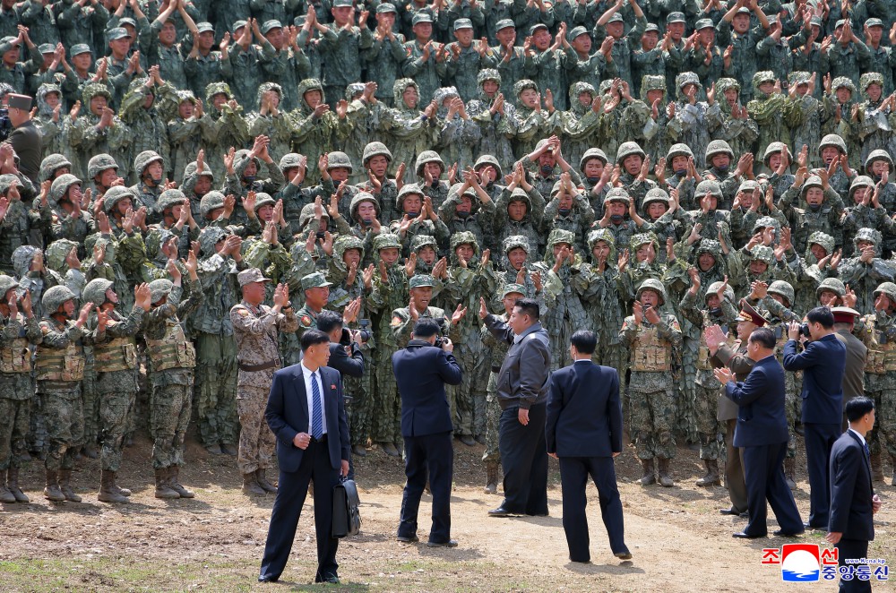 金正恩同志在观察所与朝鲜人民军主要指挥成员一起观摩了各种不同的战术训练方式课。