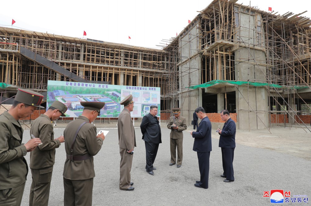 김정은동지께서는 이어 강동군종합봉사소건설장을 찾으시였다.