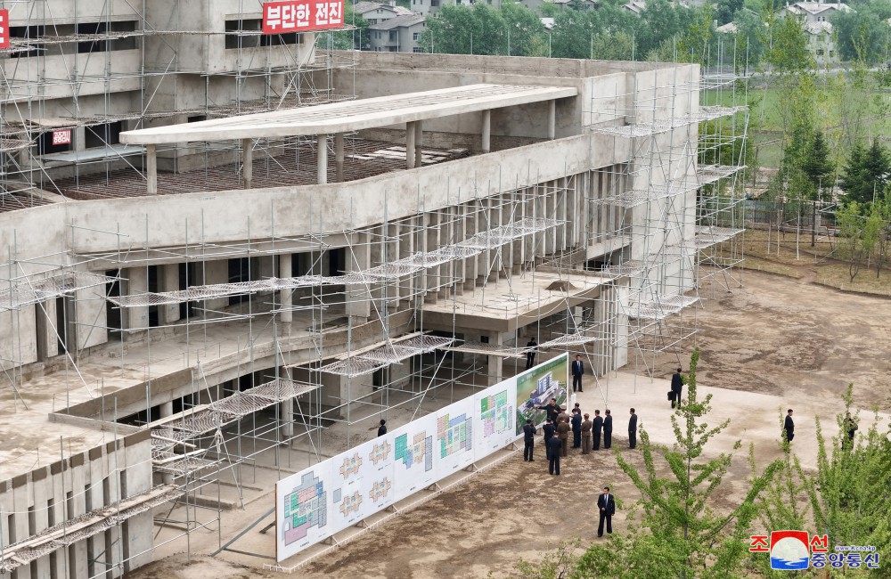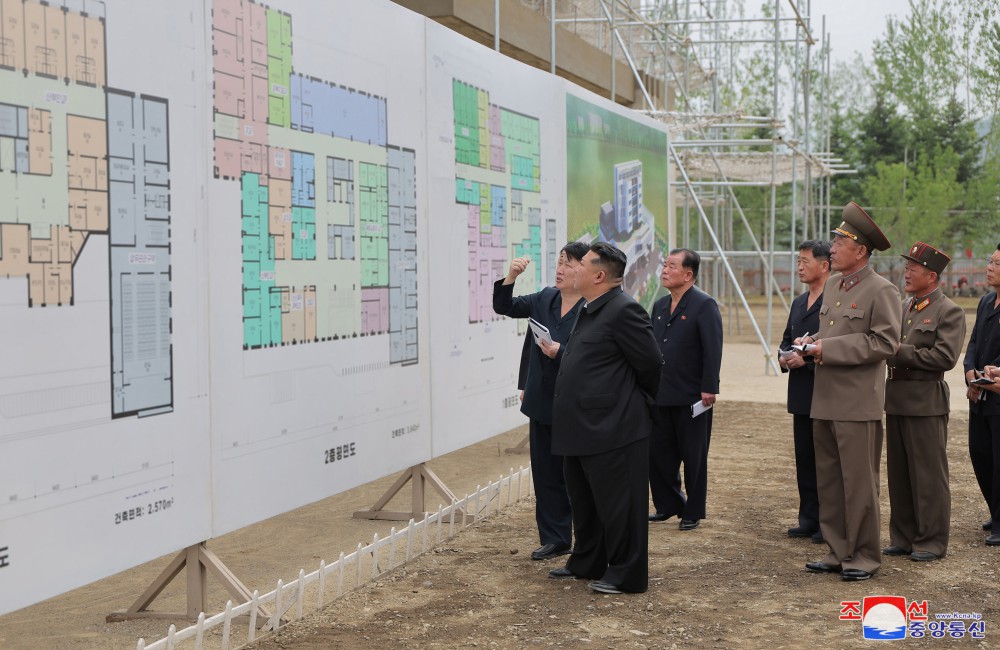 김정은동지께서는 먼저 강동군병원건설장을 돌아보시였다.