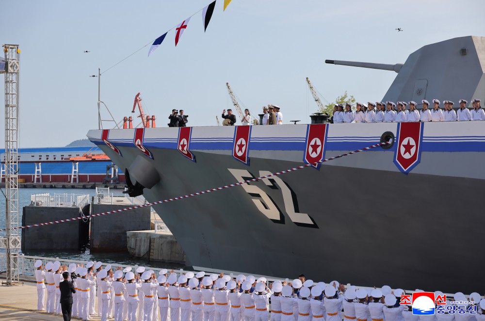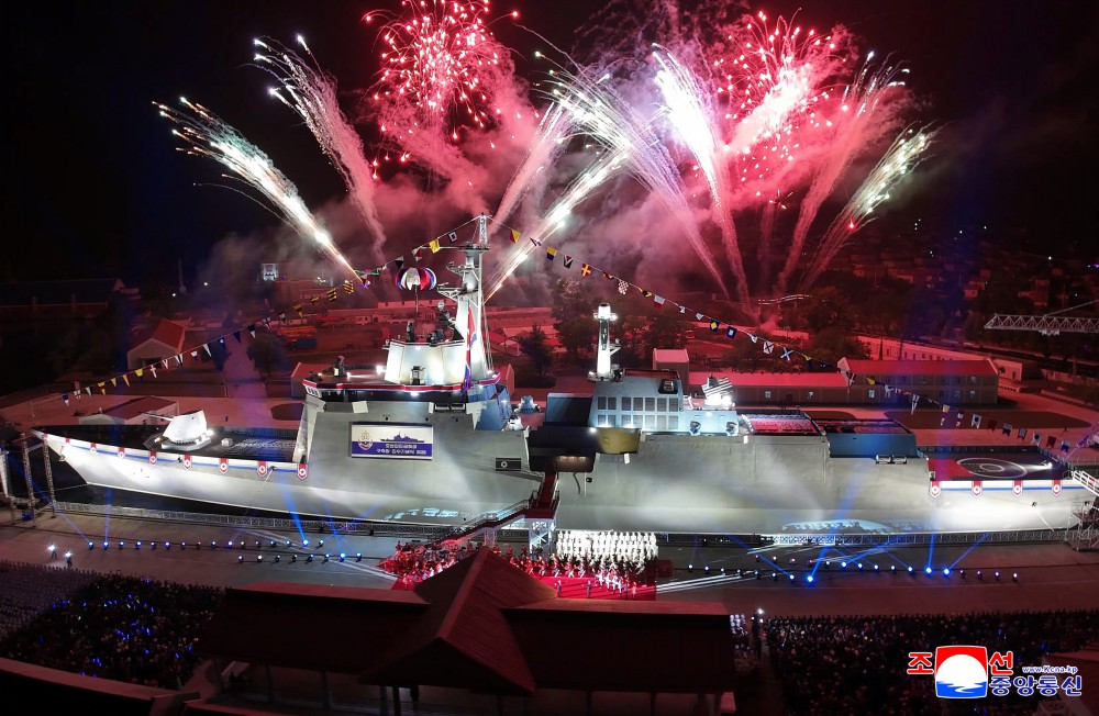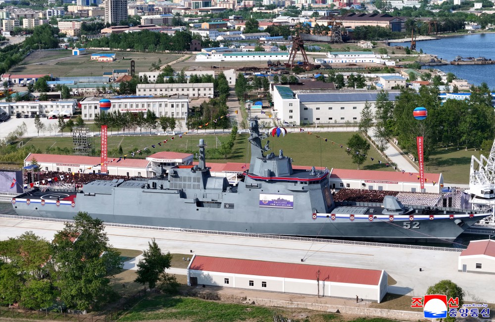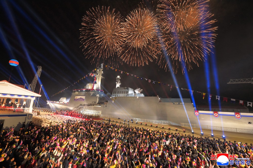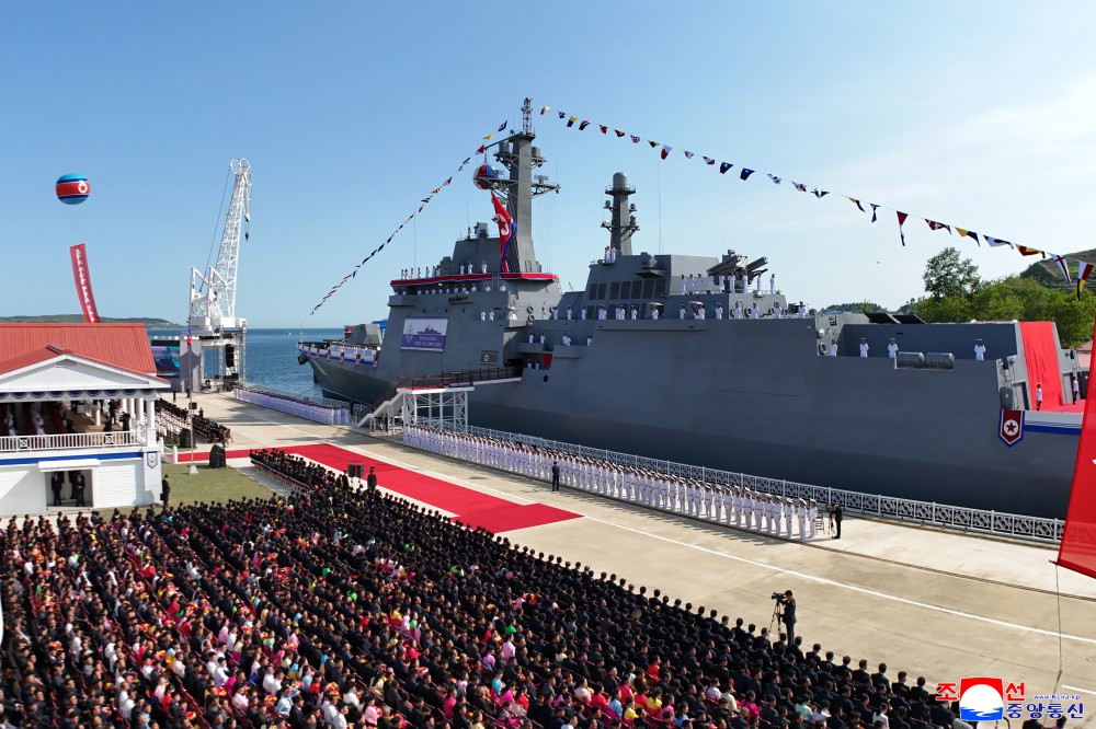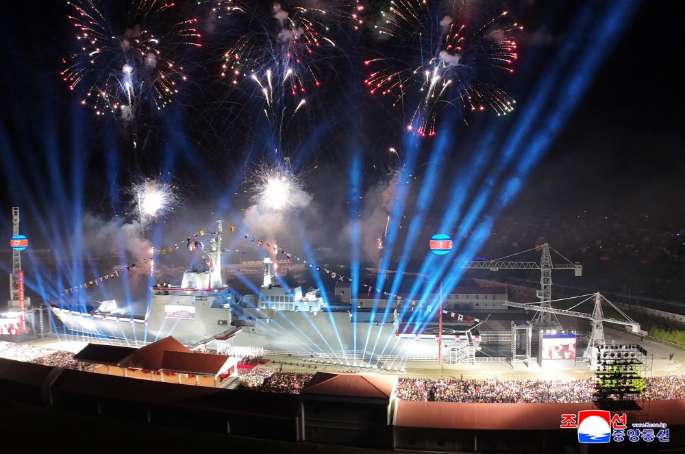 朝鲜人民军海军驱逐舰下水典礼6月12日在罗津造船厂举行。