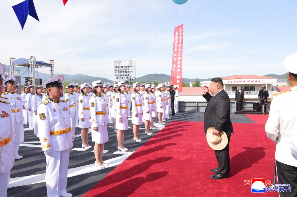 金正恩同志同党政领导干部、朝鲜人民军海军司令等海军主要指挥员、朝鲜人民军各军种军级单位指挥员、各道党委责任书记、军工部门干部、造船部门干部、有功者一起在主席台就座。