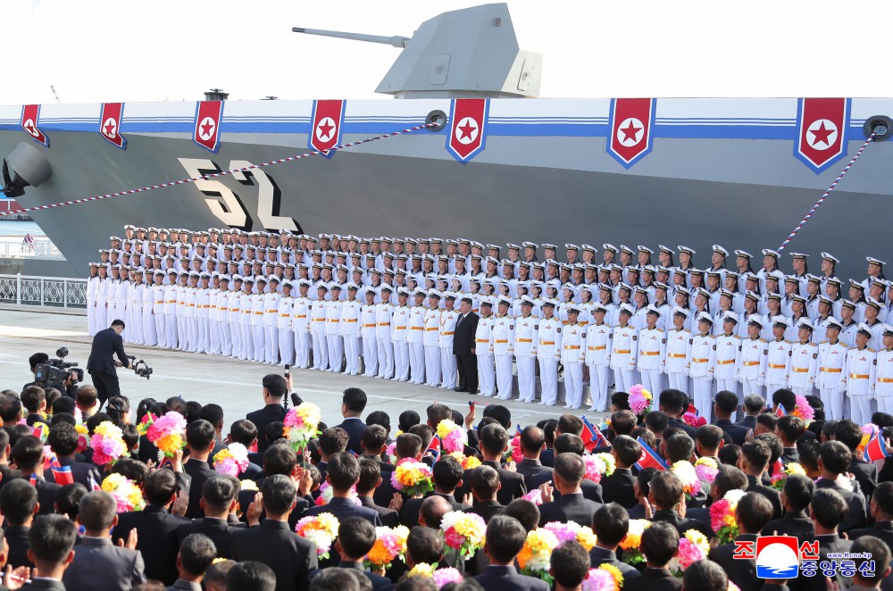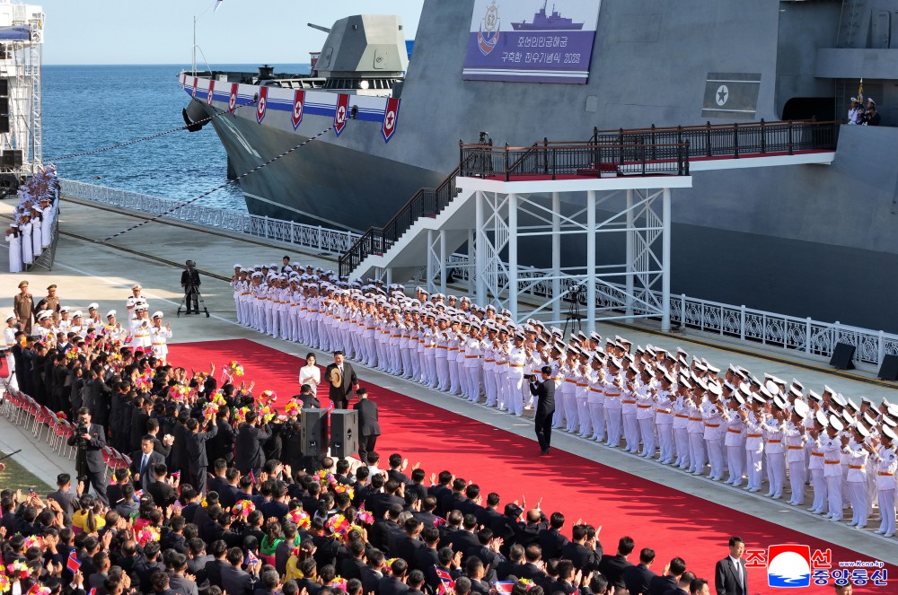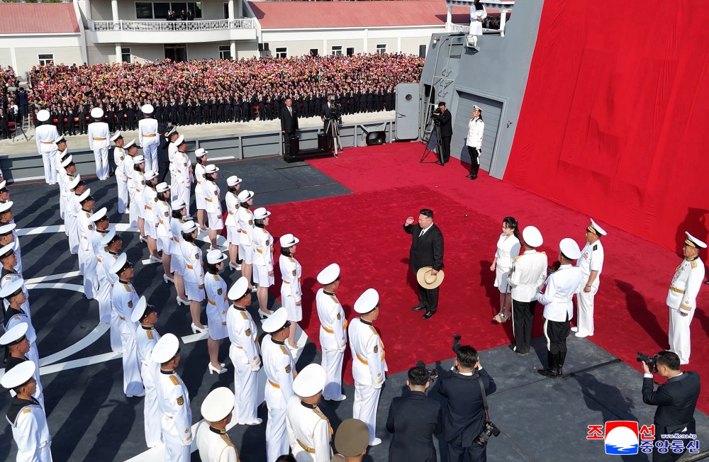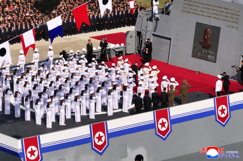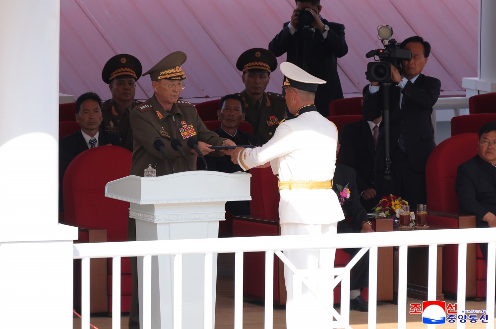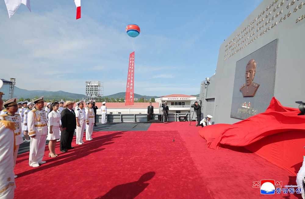 下水典礼上,朝鲜民主主义人民共和国国防相努光铁发布敬爱的金正恩同志亲笔签署的关于驱逐舰等级规定和命名的朝鲜劳动党中央军事委员会命令,并向朝鲜人民军海军东海舰队司令转交了船舰等级及命名证书。
