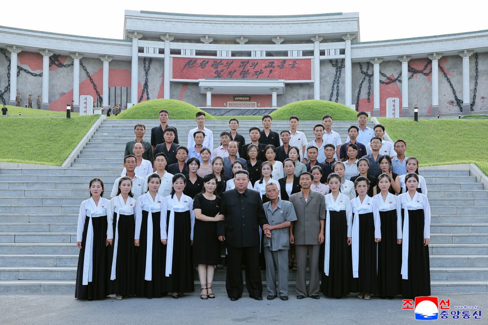 金正恩同志表示相信,我们党革命思想的拥护者、宣传者——阶级教育部门的讲解员们时刻牢记自己任务的重要性,将一如既往地坚守阶级教育前哨,并同信川阶级教育馆工作人员、讲解员和员工合影留念。