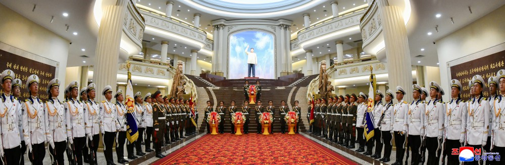 金正恩同志参观了祖国解放战争第一阶段到第四阶段时期馆、近卫部队馆和胜利馆。