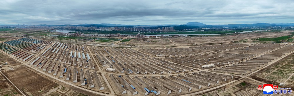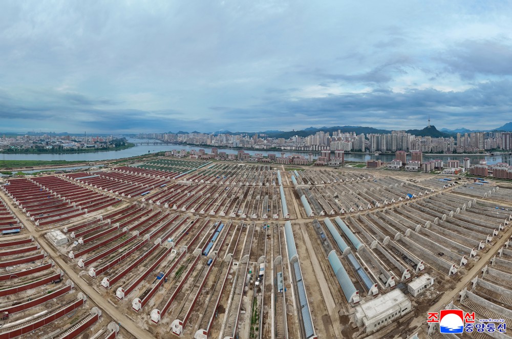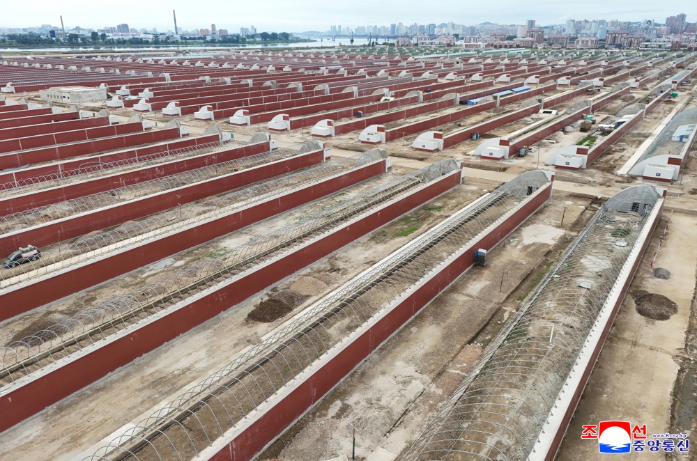 军民建设者发挥无条件的执行精神和顽强的实践能力落实我们党重视并宣布的宏伟建设事业。由于他们引以自豪的建设斗争,在庞大性、独创性和综合性上史无前例的温室农场建设项目按照预定的时间表全面推进,金正恩同志对此深表满意。