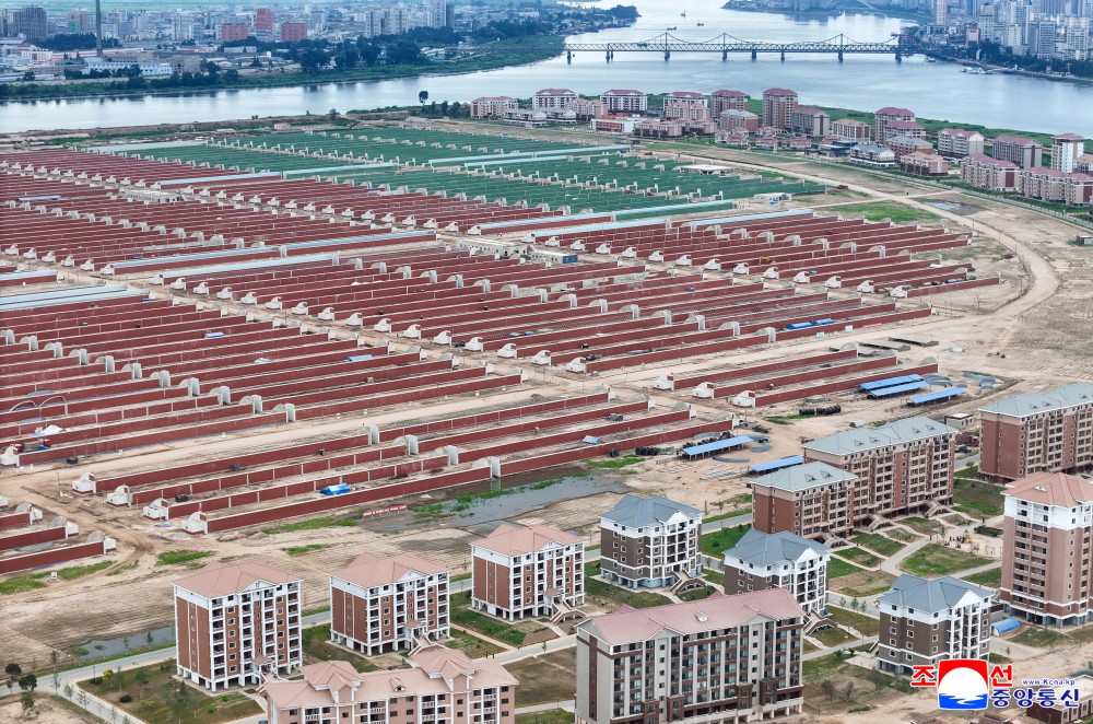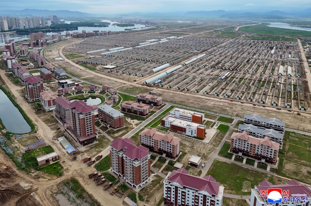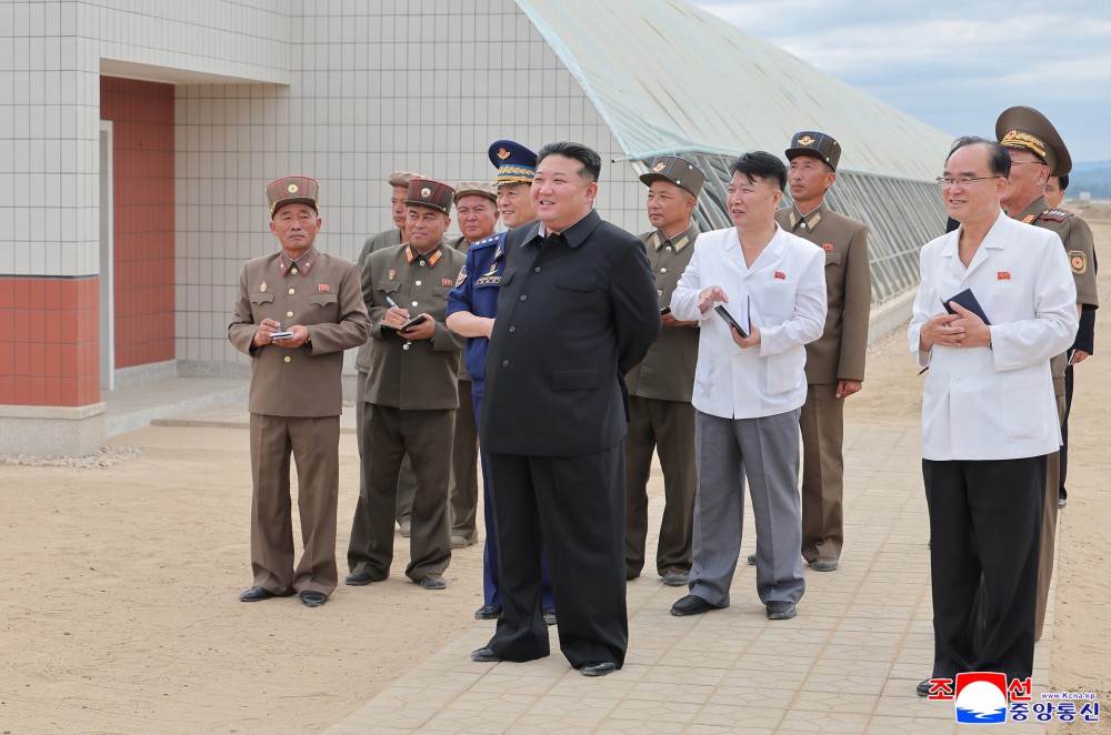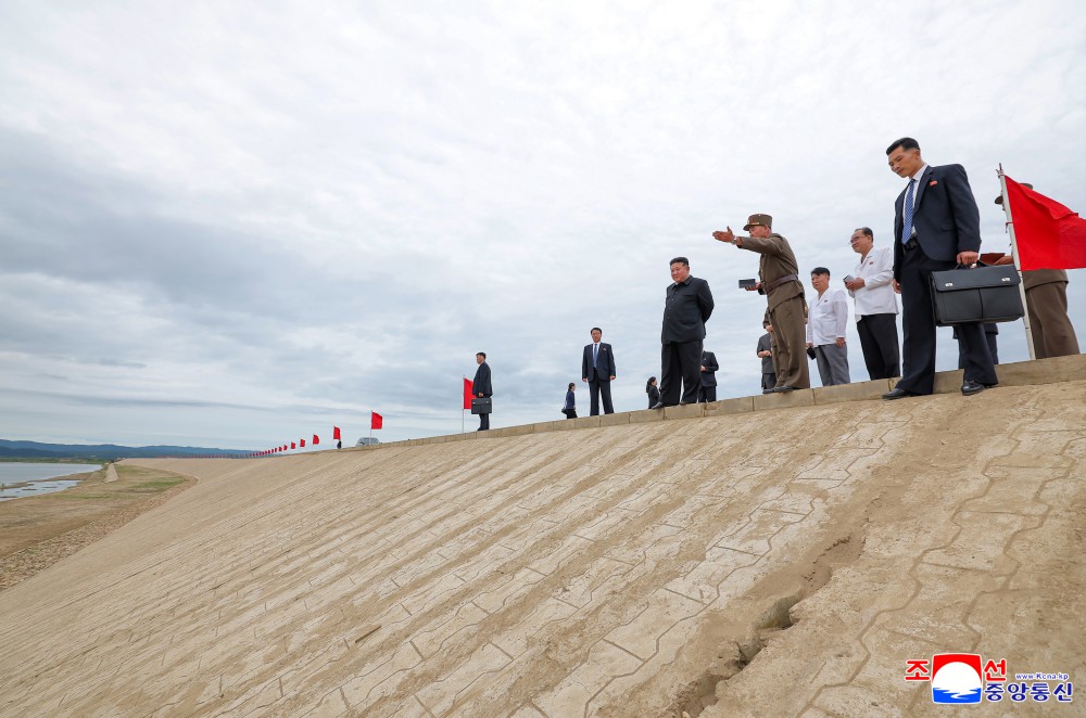 朝鲜劳动党总书记、朝鲜民主主义人民共和国国务委员长金正恩同志8月1日视察了威化岛温室综合农场建设工地和新义州市、义州郡的岛屿地区堤坝永久化工程建设工地。