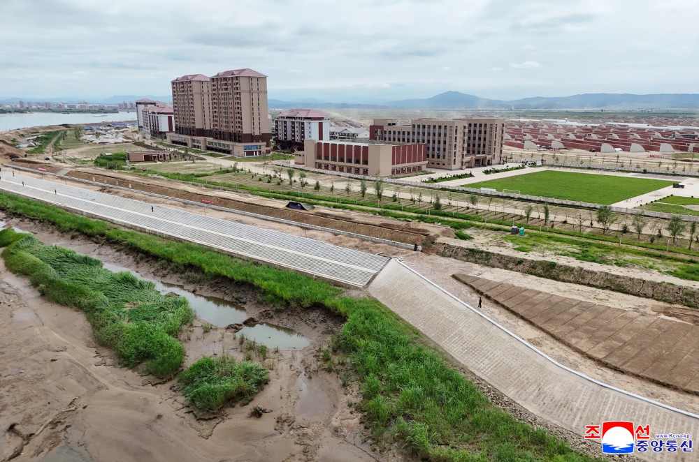 金正恩同志高兴地说,这里的居民逆来顺受的水灾现在已成了往事;不亚于首都平壤的大同江畔,有人行便道和江岸公园正在建成,真是沧桑巨变。金正恩同志高度评价全体军人建设者的功勋,赞赏他们为把祖传的灾殃之岛转变成乐园之岛做出贡献。