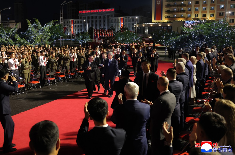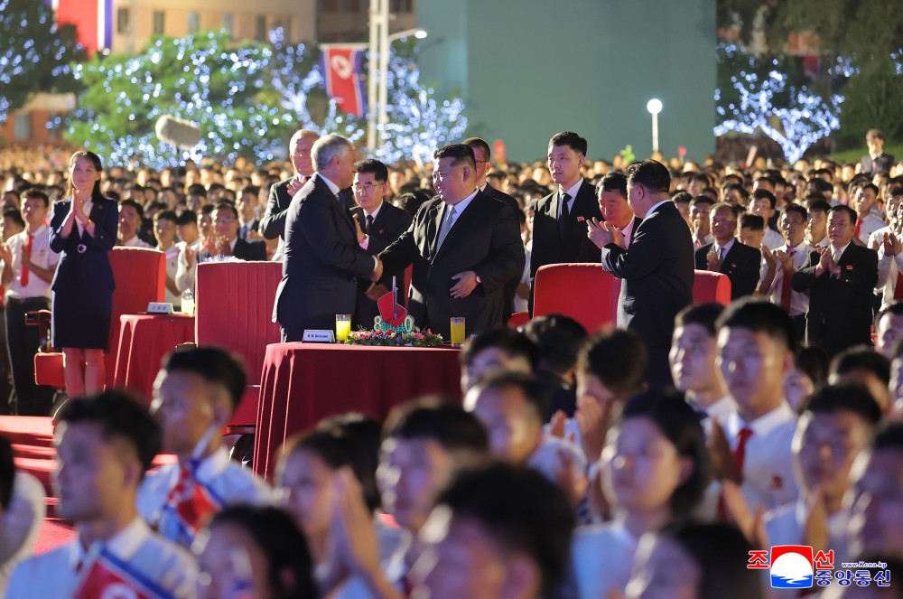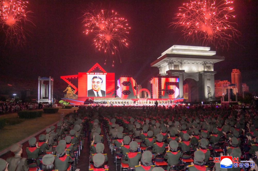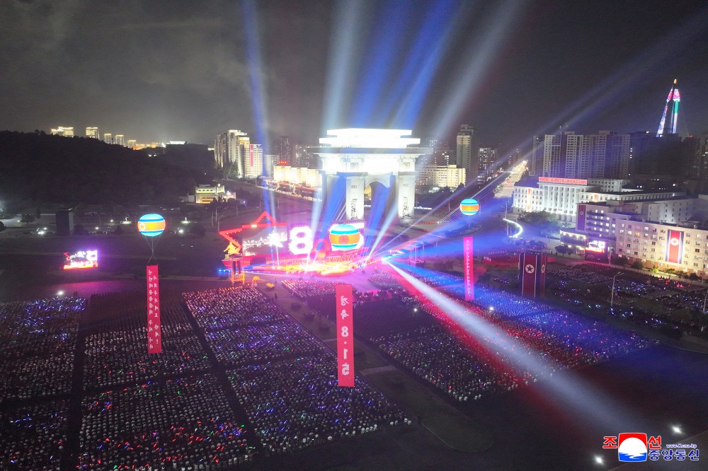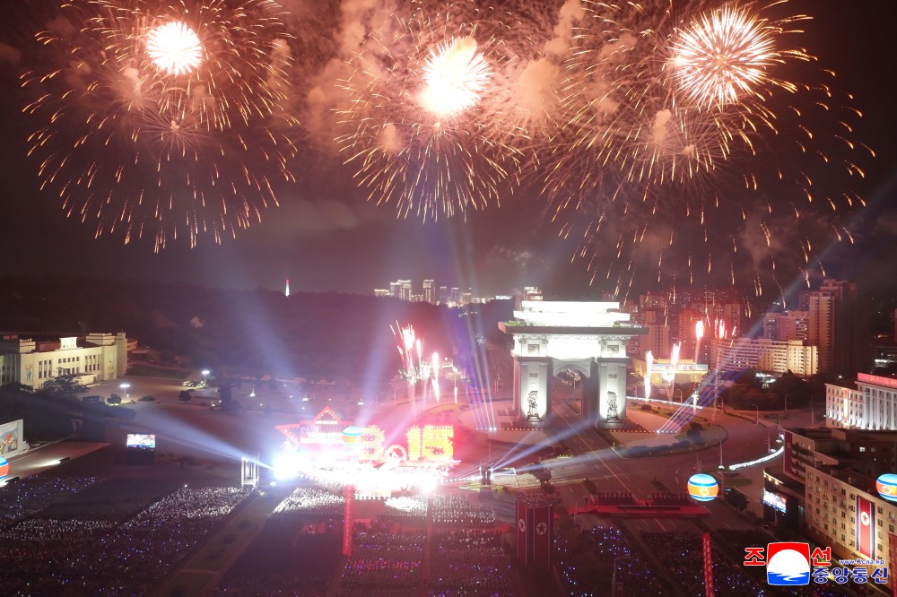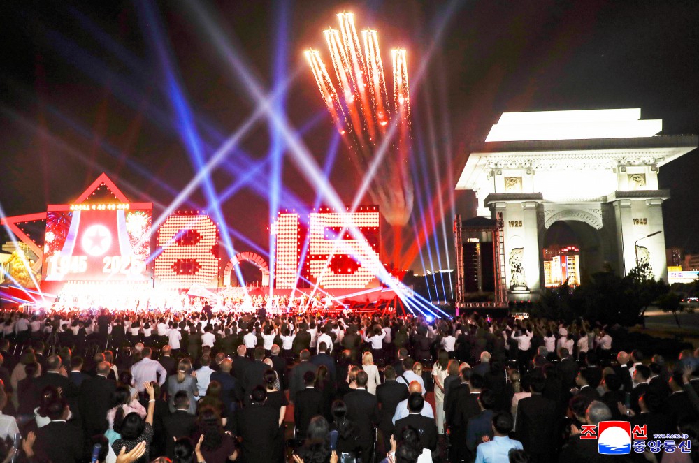 朝中社平壤8月15日电 我国正在隆重纪念社会主义朝鲜一切胜利和光荣的起点、自主强国势不可挡的80年历史开端的史意深远的节日,庆祝祖国解放80周年演出8月14日在凯旋门广场举行,给人民增添迎来祖国史册上值得大书特书的大政治庆典的欢喜和激情。
