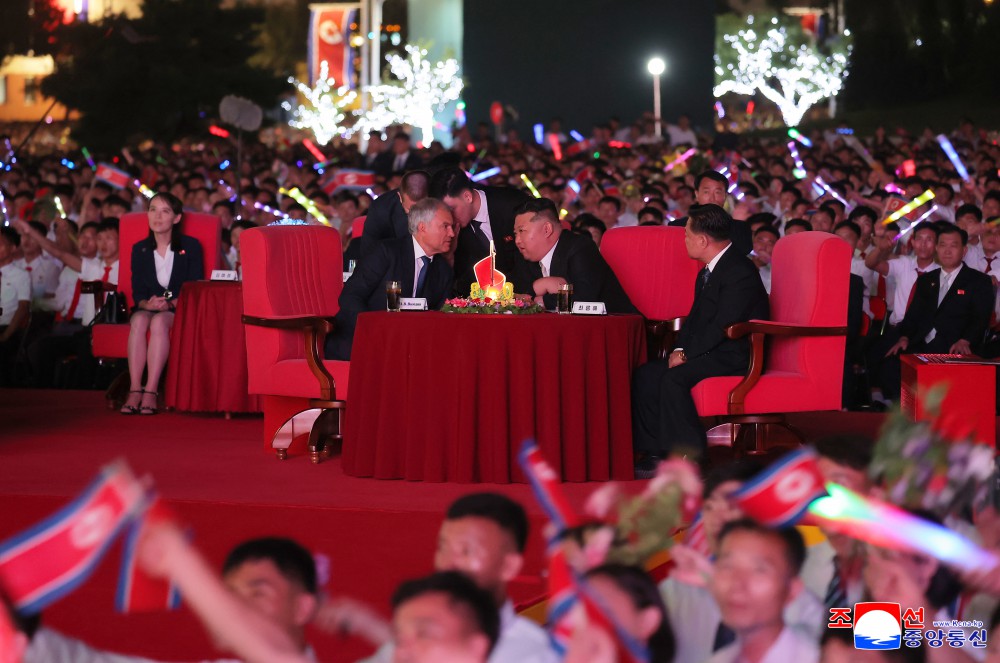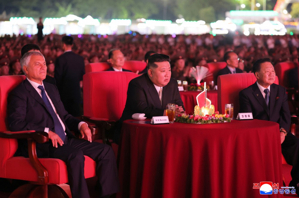 俄罗斯联邦国家杜马代表团、文化部代表团成员和俄罗斯驻朝鲜特命全权大使、使馆成员一同观看演出。