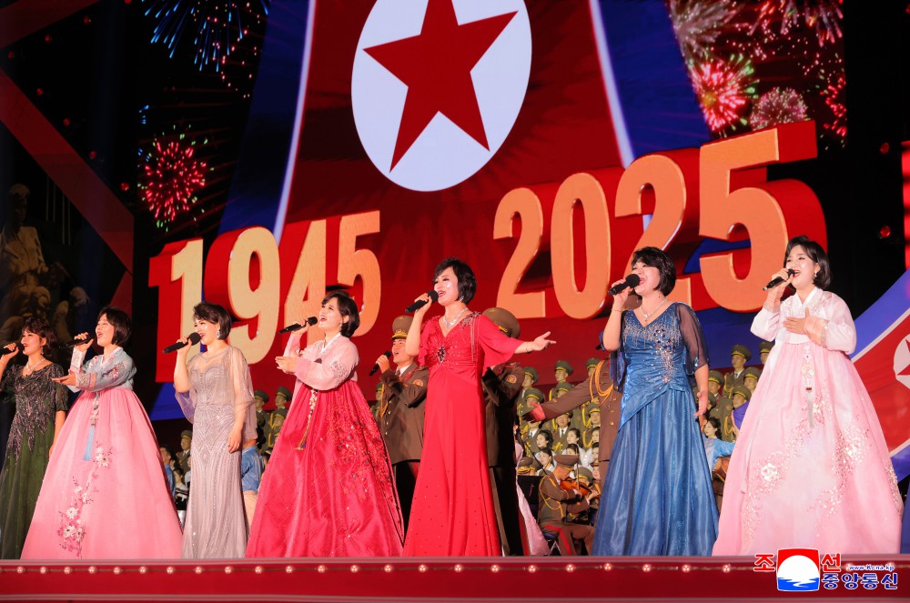 庆祝祖国解放80周年演出激情讴歌了我国人民对以白头山的精神和气概开辟并乘胜前进的主体朝鲜的英雄历程的骄傲和自豪,要靠火热的爱国忠诚和百折不挠的意志续写伟大强国传记的坚定信念和刚毅气度,给观众留下了深刻的印象。(完)