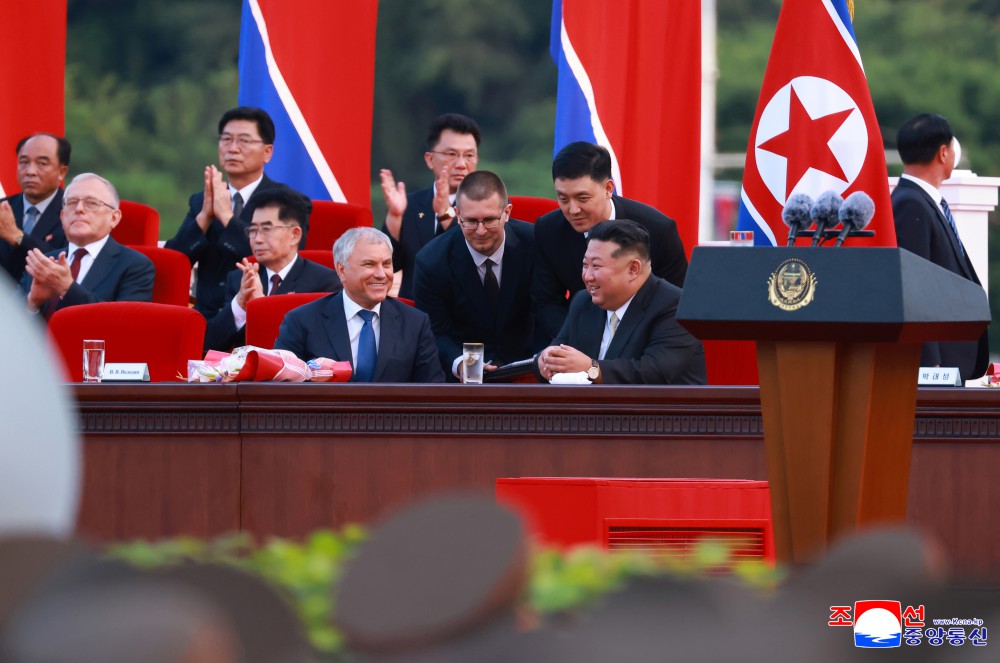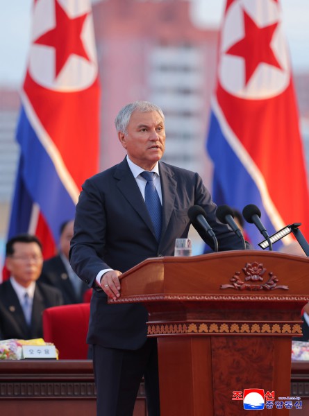 沃洛金表示,为参加隆重的庆祝大会感到高兴。沃洛金对读了俄罗斯联邦总统弗拉基米尔•弗拉基米罗维奇•普京同志在朝鲜解放80周年之际致朝鲜民主主义人民共和国国务委员长