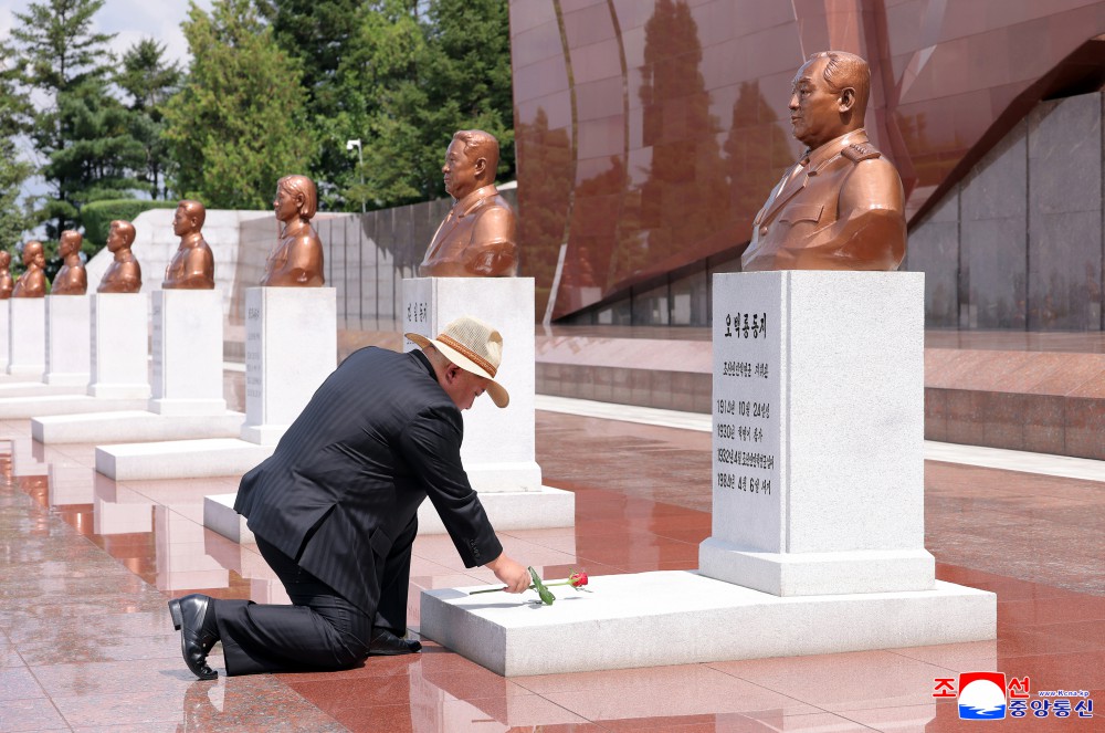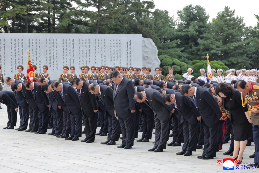 朝鲜劳动党总书记、朝鲜民主主义人民共和国国务委员长金正恩同志在祖国解放80周年之际,8月14日参谒大城山革命烈士陵园。