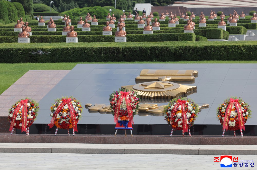 分别以朝鲜劳动党中央委员会、朝鲜民主主义人民共和国国务委员会、朝鲜民主主义人民共和国最高人民会议常任委员会、朝鲜民主主义人民共和国内阁名义敬献了花圈。