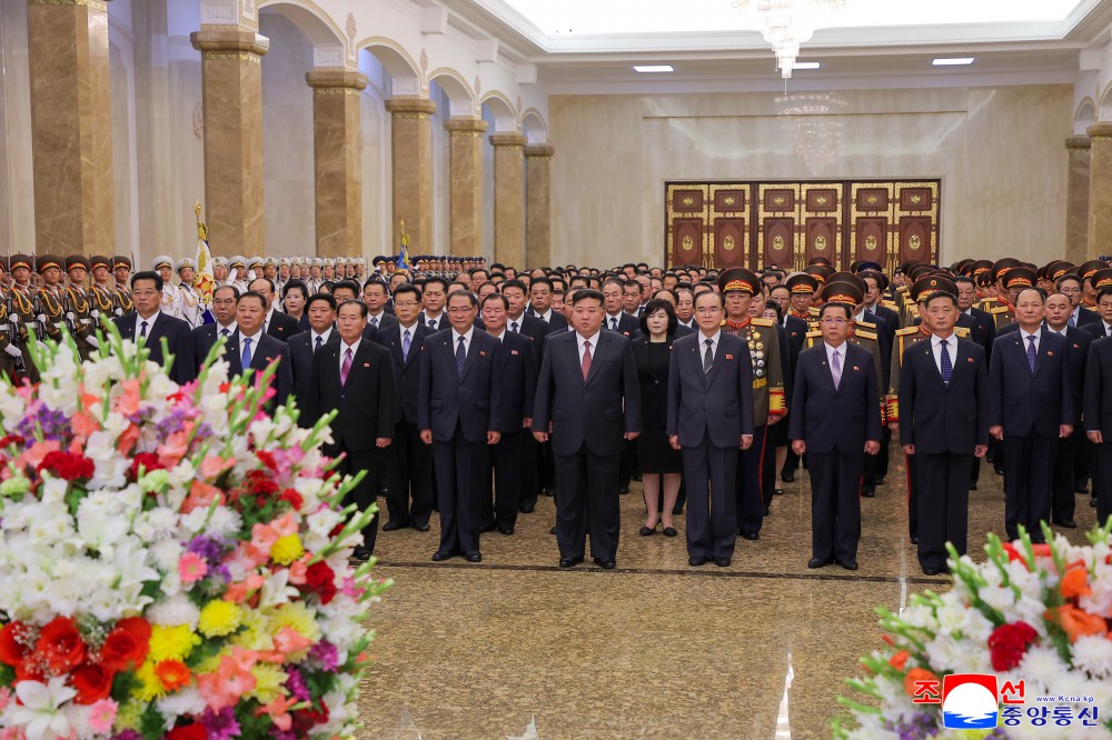 在祖国解放80周年之际,朝鲜劳动党总书记、朝鲜民主主义人民共和国国务委员长金正恩同志8月14日参谒锦绣山太阳宫。