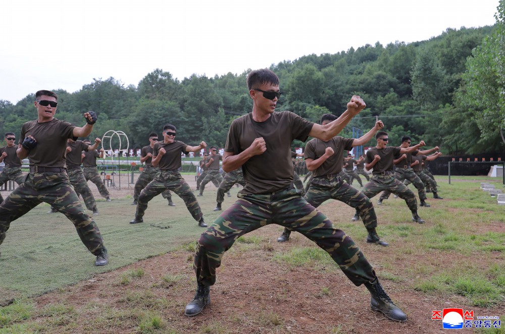 金正恩同志说:如今,各国争相开发并应用威力强大的武器装备。要在战场上占据哪一个国家特战兵力都无法比拟的绝对优势,就要积极推进武器装备现代化,同时不断探索和采用朝鲜式创新战法和战斗方案,严格要求军人运用自如。