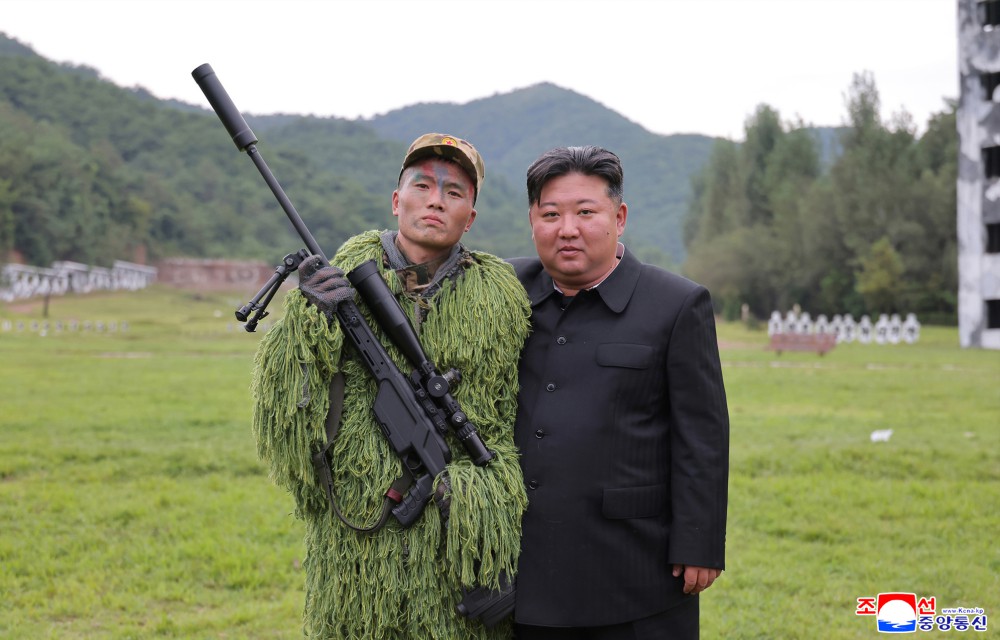 金正恩同志在训练基地接见为执行特殊任务组建的狙击手和特战部队军人,并了解了部队武器装备情况及训练情况。