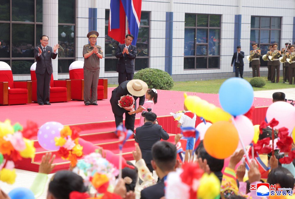 敬爱的金正恩同志出席竣工典礼。