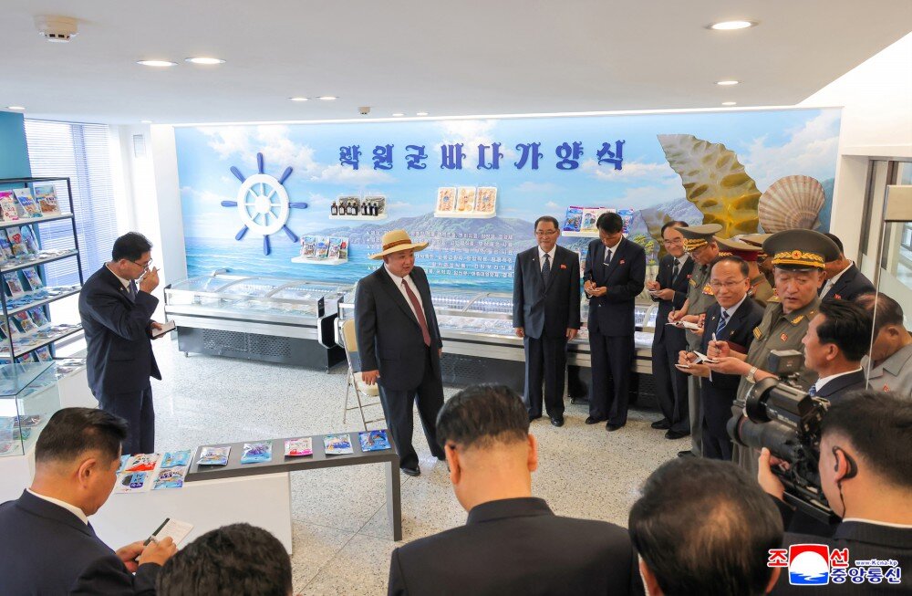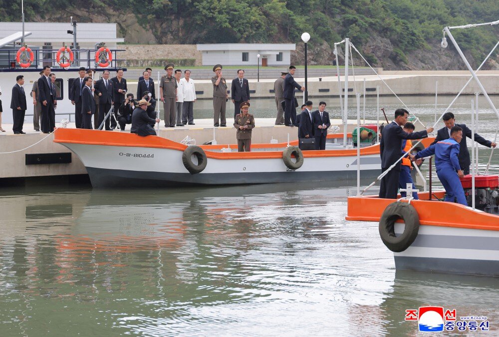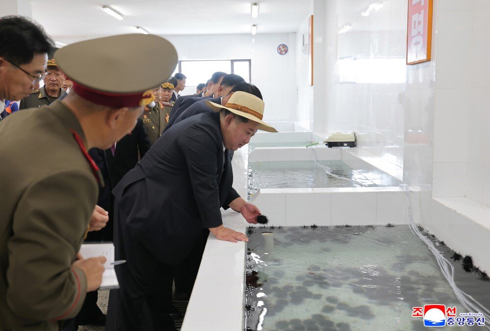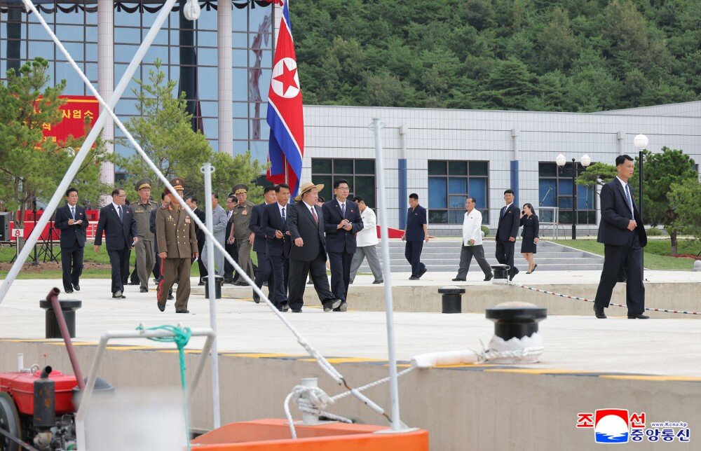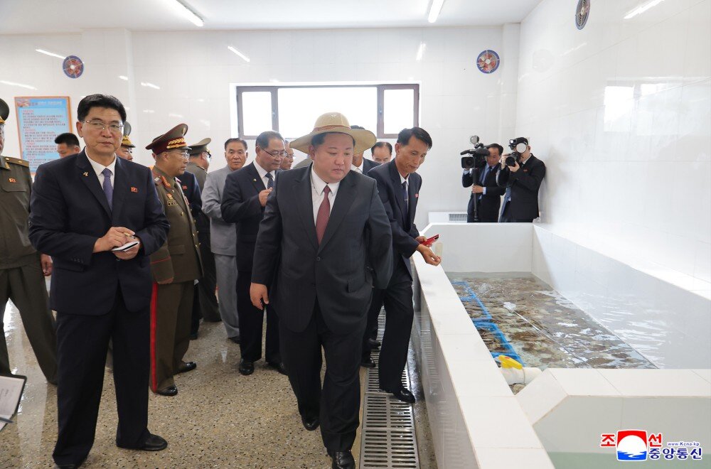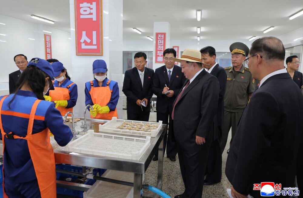 金正恩同志参观产品展室、科技普及室、统调室、扇贝及海带加工场、码头等,详细了解了经营管理及养殖物加工情况和未来发展前景。