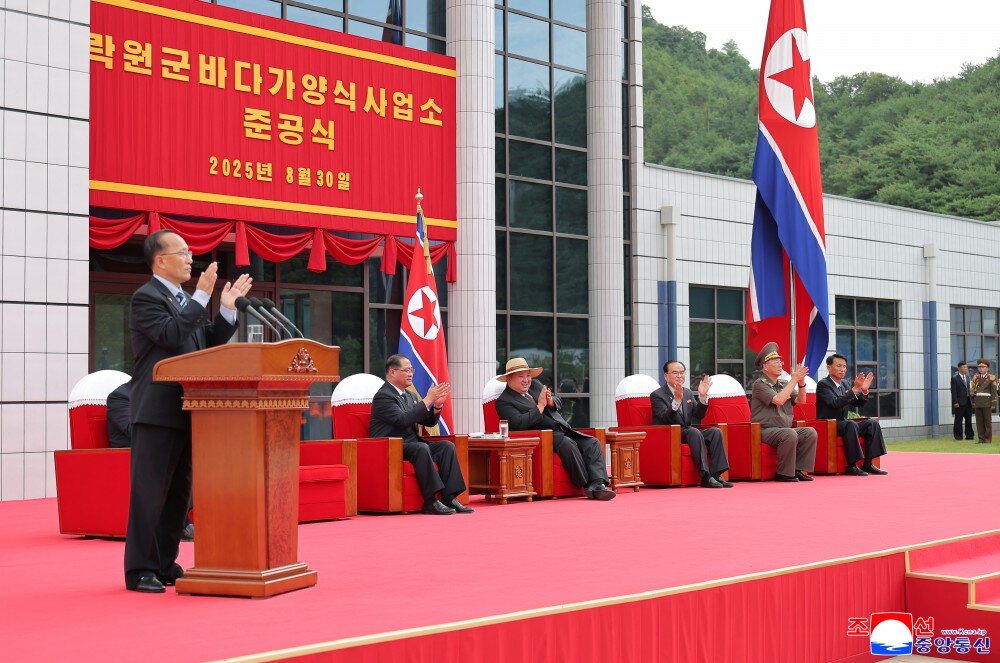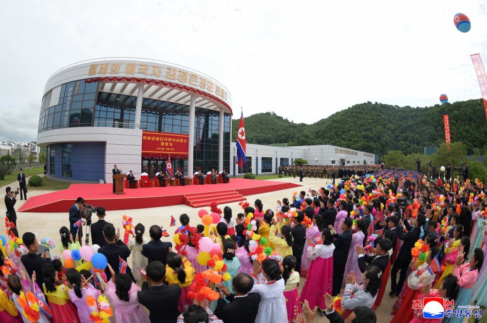 根据东西两面临海的我国自然地理特点,海岸沿线地区市、郡发展本地水产业,夯实地方经济自立基础,改善地区居民物质生活,是我们党的地方发展政策。按照这一政策和历史性党的八届十一中全会决议精神,今年党和国家重要政策建设项目——乐园郡浅海养殖事业所和渔村新式住宅区建设工程得到大力推进,今天有意义地迎来了盛大的竣工典礼。