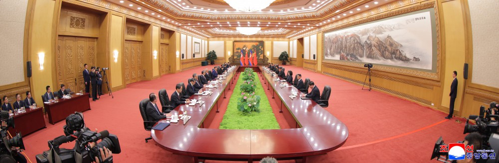 习近平同志代表中国党、政府和人民再次热烈欢迎金正恩同志访问中华人民共和国,并表示,金正恩同志来华出席纪念中国人民抗日战争暨世界反法西斯战争胜利80周年活动,体现了朝方维护二战胜利成果的坚定意志,也为中朝两党两国进一步发展友好合作关系提供了重要契机。