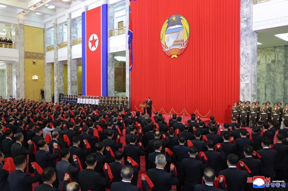 金正恩同志结束讲话,雷鸣般的“万岁!”欢呼声震撼了全场。
