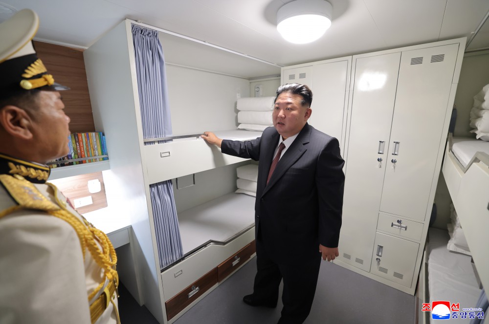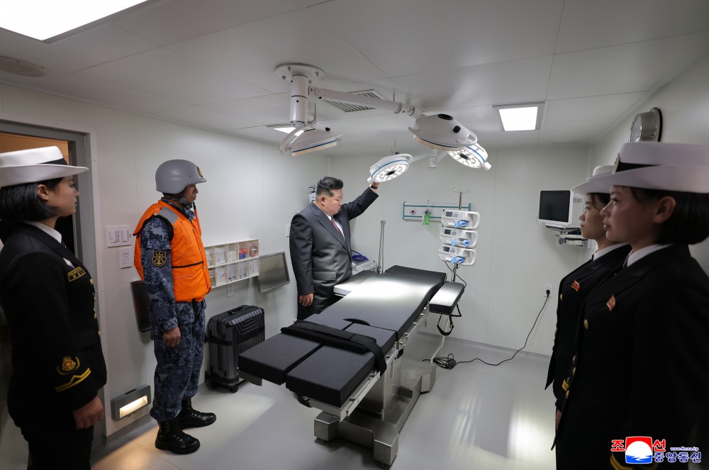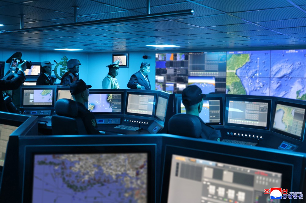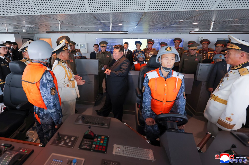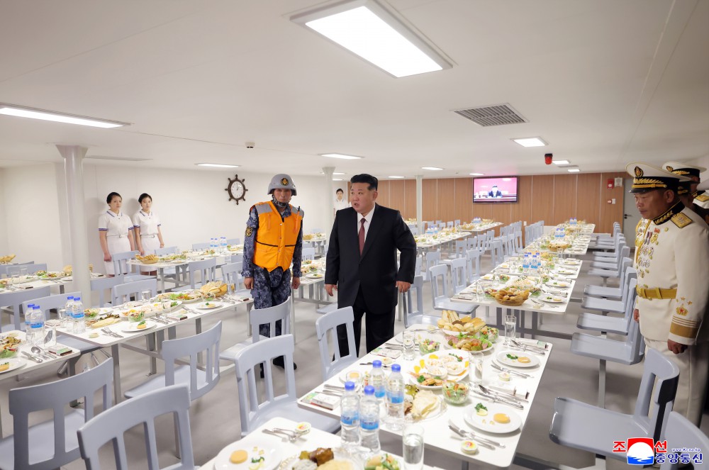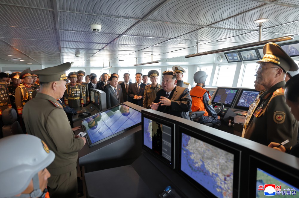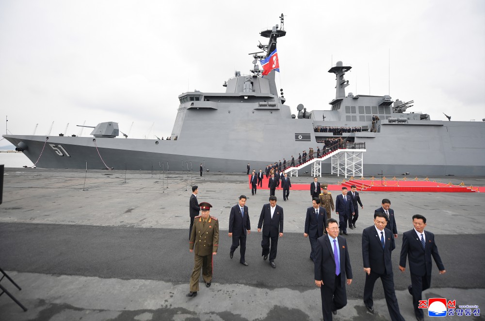 金正恩同志说,在迎接光荣的我们党成立80周年的历史之年,展露威武的雄姿浮在祖国大海上的超强力军舰是主体武装力量强化发展的显著证明,也是朝鲜劳动党自卫国防路线的正确性和生命力的又一个伟大证明。