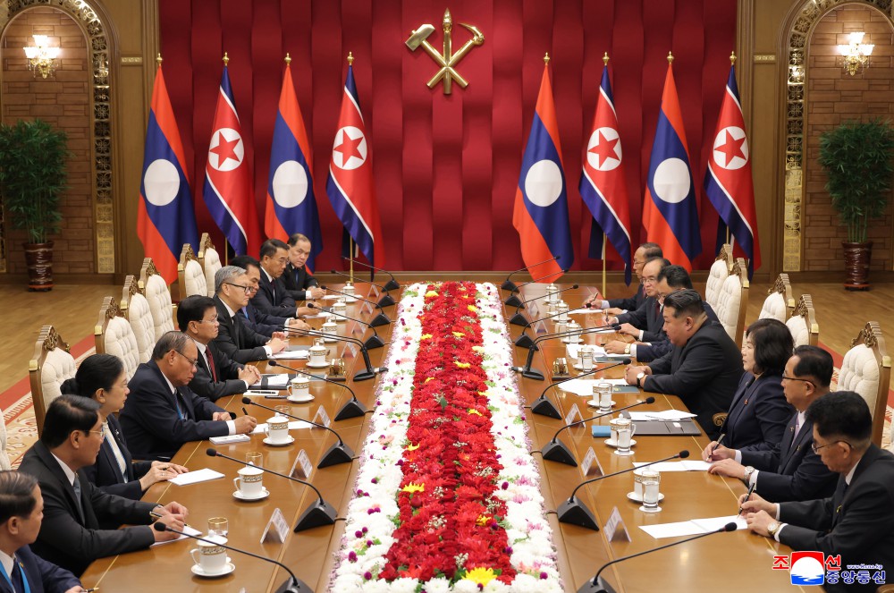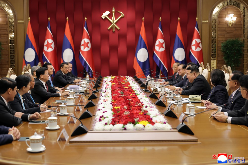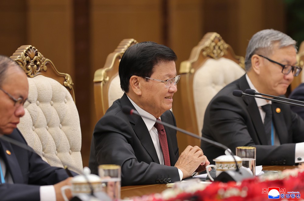 敬爱的金正恩同志同老挝人民革命党中央委员会总书记、老挝人民民主共和国主席通伦同志会谈