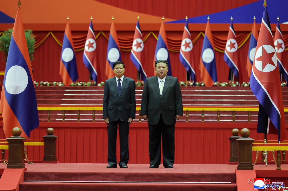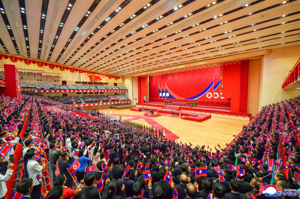 老挝人民民主共和国国歌和朝鲜民主主义人民共和国国歌庄重奏响,鸣礼炮二十一响。