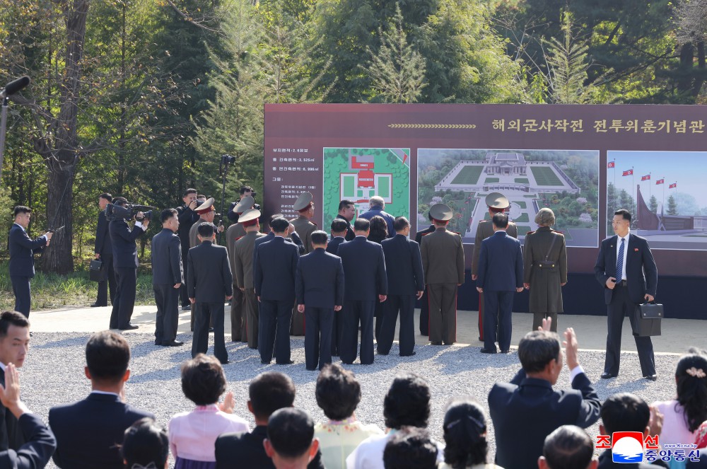 金正恩同志表示,今天,我们为永远传颂朝鲜人民的好儿子、正义的守护者——海外作战部队英雄和阵亡者的光辉人生而举行作战功勋纪念馆奠基典礼,铲起建设工程的第一锹土。参战军人们不图任何回报,无声无息地向异国战场迈出了豪迈的步伐。金正恩同志谈及了从那天后的一年里所取得的伟大胜利、传奇式功勋和建立作战功勋纪念馆的历史意义。