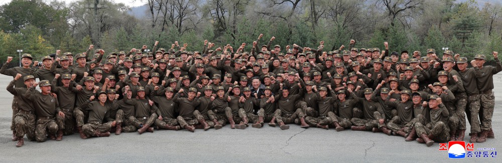 金正恩同志看着战斗员们充分显示无比的勇猛和志气的训练表示极大满意,我们武装力量为完成应对世上最下流、最卑鄙的敌人,坚决捍卫国家主权和发展权,可靠地保卫人民命运和未来的重大使命做好万全准备。他亲切鼓励军人们心怀要以传奇式的英雄传在部队沿革和光荣军旗上谱写胜利的赫赫军功的意志,全心全力恪守神圣本分,并同他们合影留念。