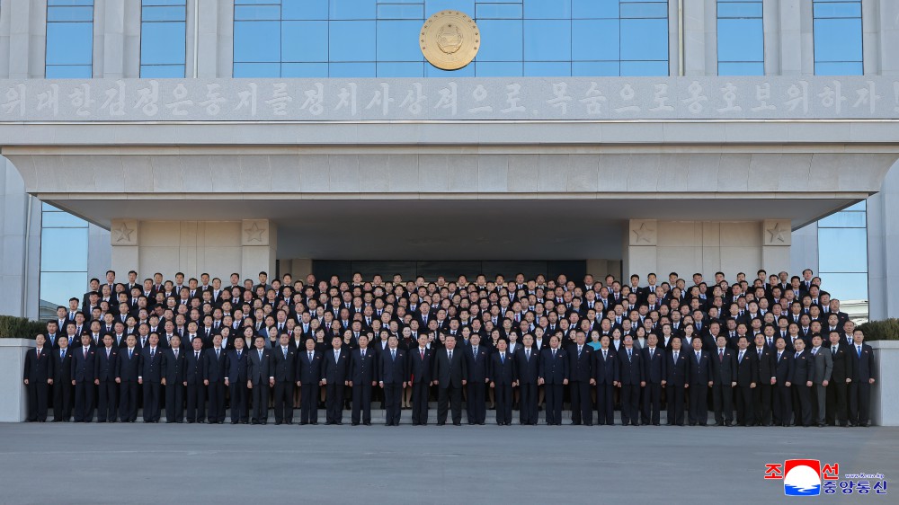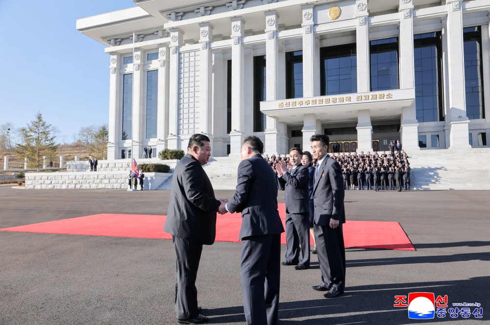 最高法院和最高检察院负责干部们在场郑重迎接了金正恩同志。