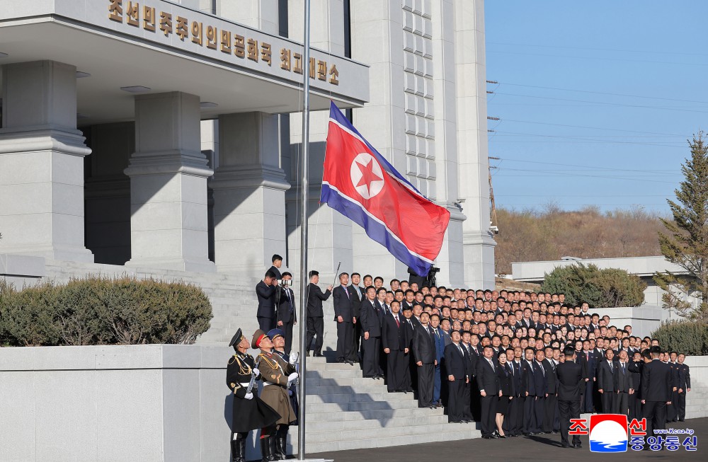 朝鲜民主主义人民共和国国旗升旗仪式举行。