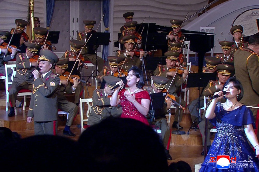 一个个节目歌颂英雄的人民空军弘扬作为贯穿朝鲜劳动党的思想和意志的精兵队伍、战无不胜的强兵队伍、打开社会主义建设突破口的尖兵队伍的名誉与功勋。