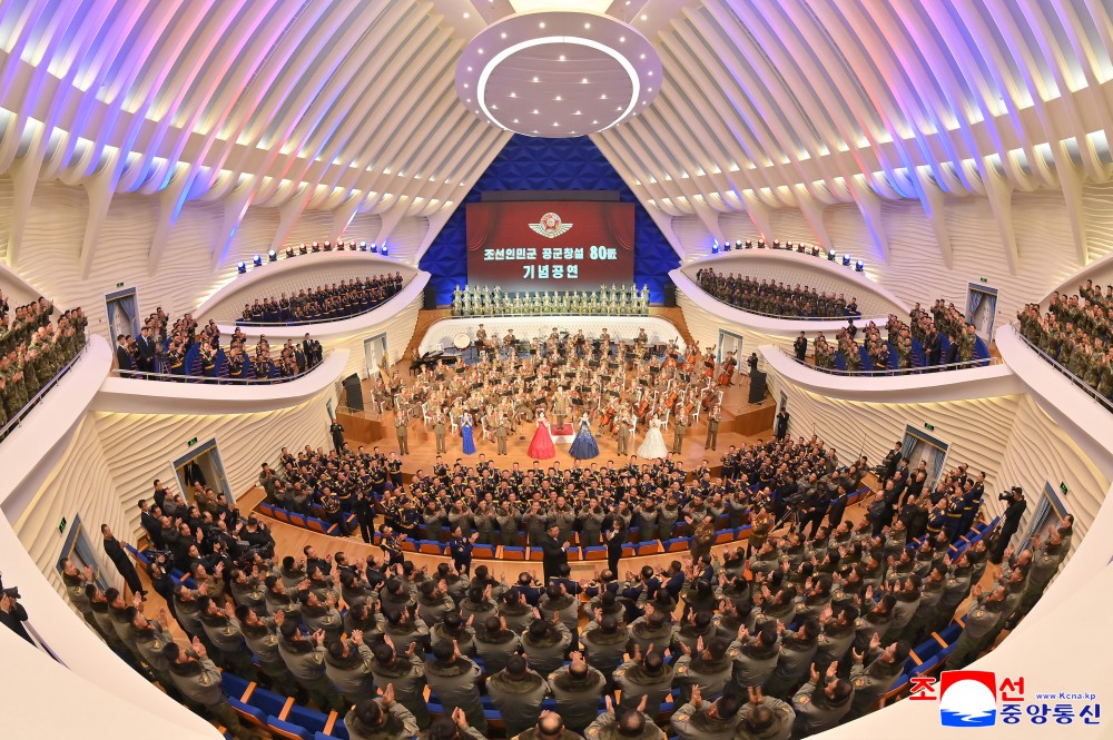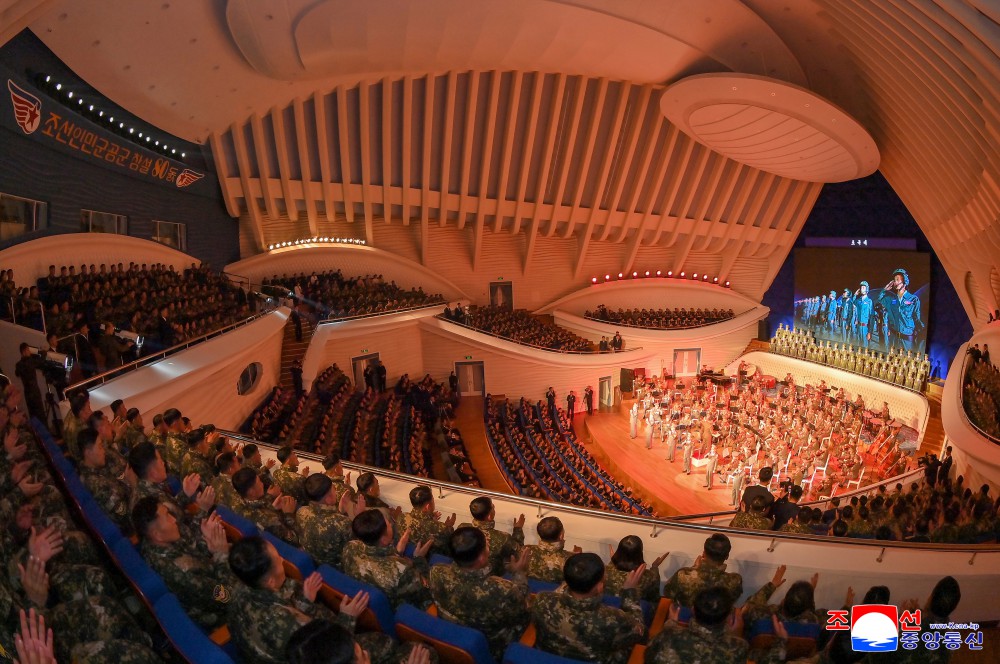 接着,纪念朝鲜人民军空军成立80周年演出在明沙十里剧院举行。