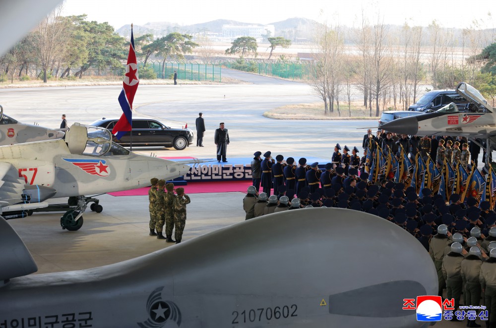 金正恩同志指出,我国空军将装备新的战略军事资产,同时被交付新的重大任务。空军在核战争遏制力行使方面独当一面,党和祖国对空军的期待确实很大。空军要发挥压倒性精神力量和进攻性气势,坚决击退和遏制敌人企图侵犯共和国领空主权的各种侦察行为和军事挑衅可能性。