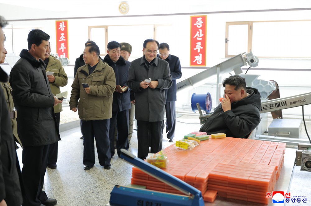金正恩同志首先实地考察了平安南道新阳郡的地方工业工厂。
