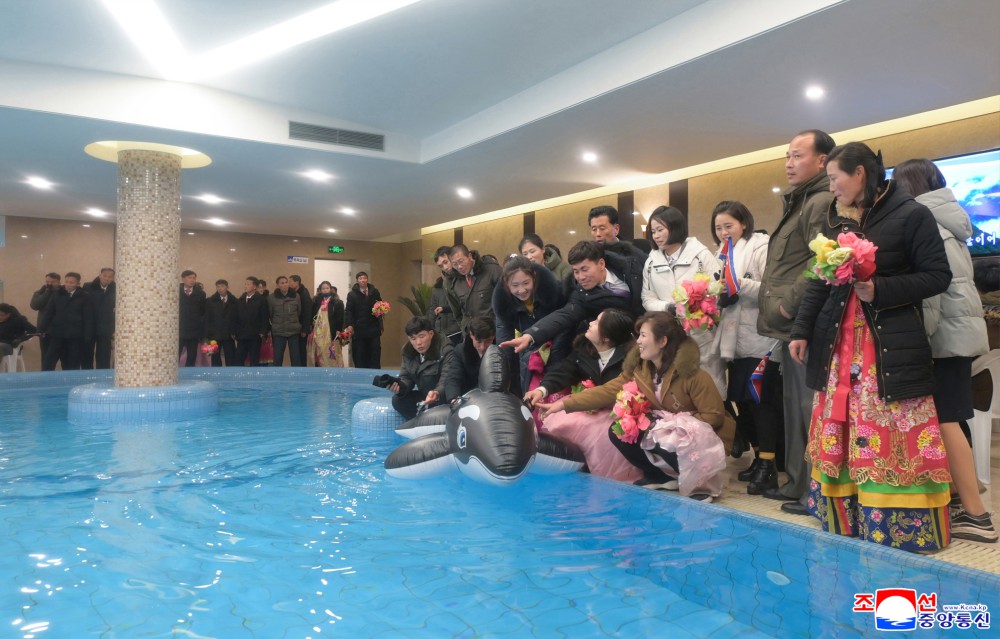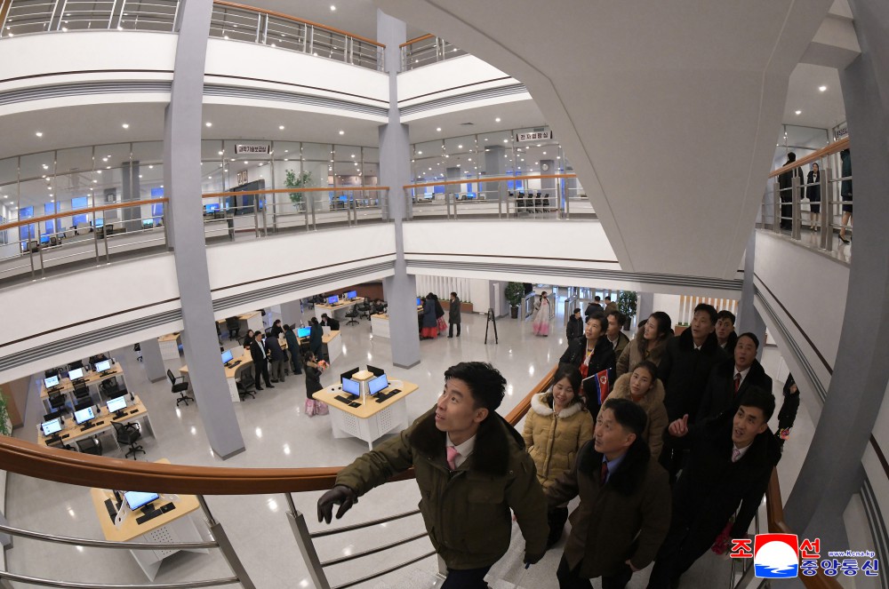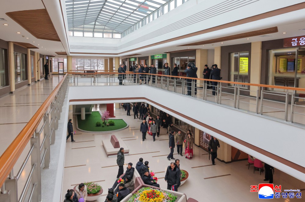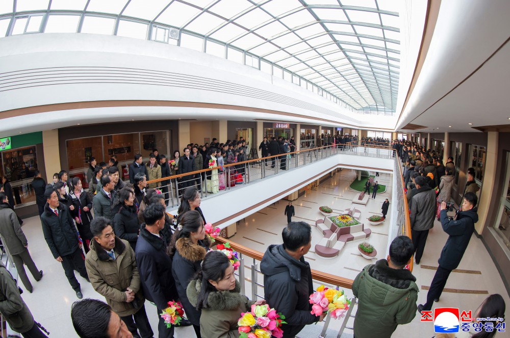 竣工典礼参加者满心欢喜地参观符合地区实际、体现现代性和经济实效性以及长远性的工厂和将为人民提供文明生活条件的综合服务中心,就劳动党政策所带来的新生活、新文明、新福祉互相交流感想。