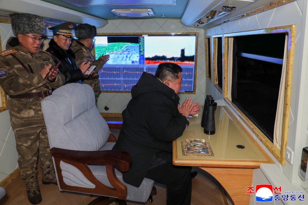 朝中社平壤12月25日电 朝鲜劳动党总书记、朝鲜民主主义人民共和国国务委员长金正恩同志观摩了新型防空导弹试射。