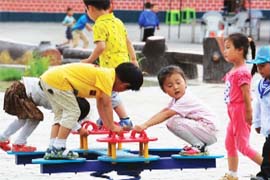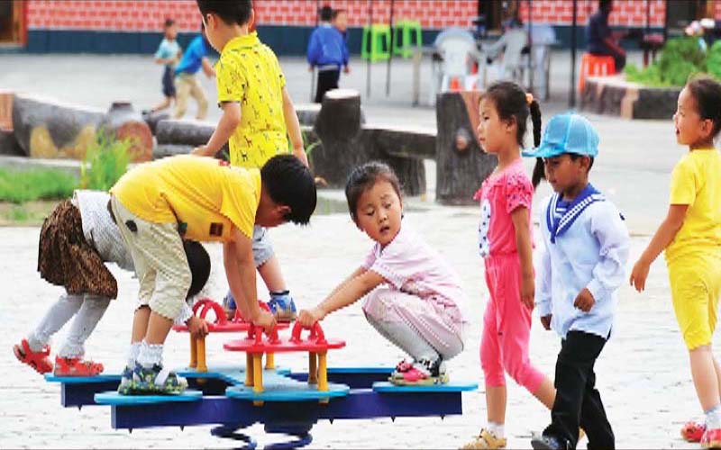公园里的花坛里盛开着各种花朵,尽情地散发着香气,有排球场,篮球场,游乐 ...
